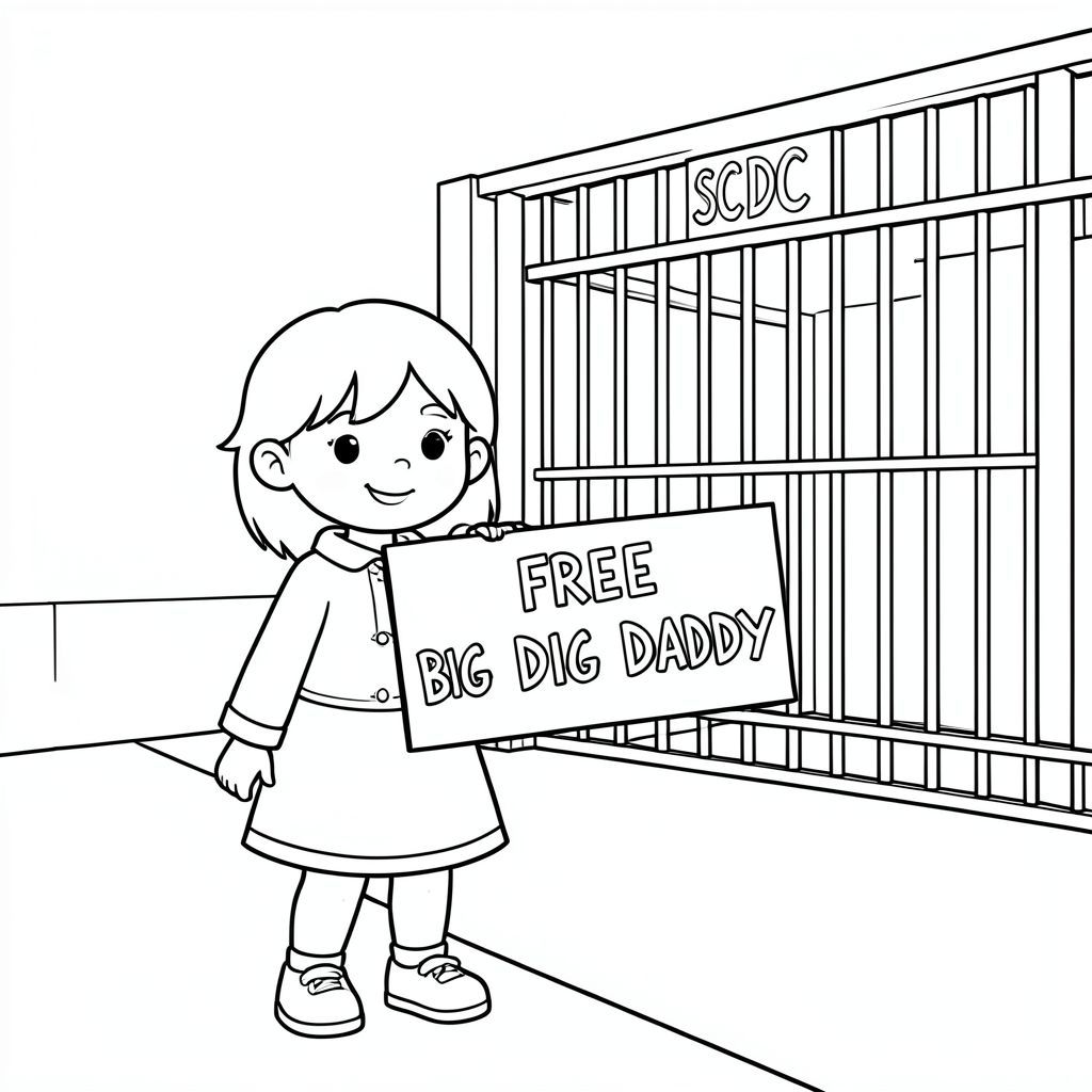 A girl standing outside of a SCDC prison, holding a sign that says free Big Daddy.
