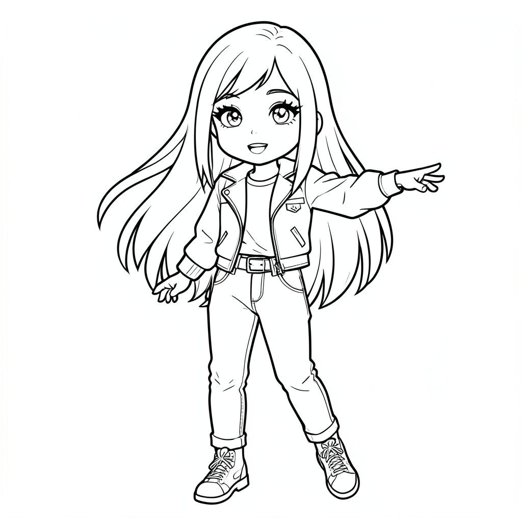 a girl with long hair long lashes and beautiful eyes with a full street style/y2k look, and looks like a dancer