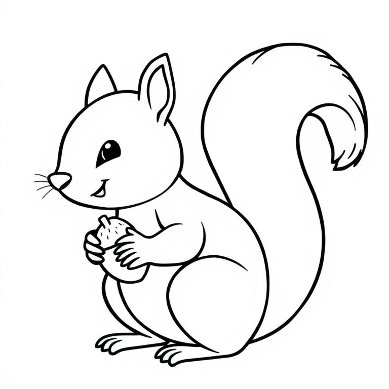 adorable squirrel holding an acorn, thick bold outlines, minimal background