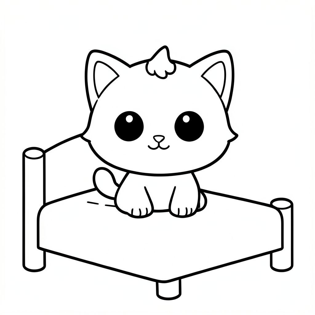 Kawaii baby cat character, very big round head, tiny small oval body, very short legs,