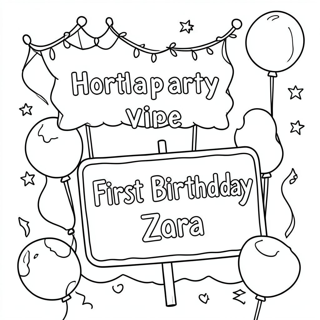 Birthday party vibes with a birthday sign somewhere saying “Happy First Birthday Zara”