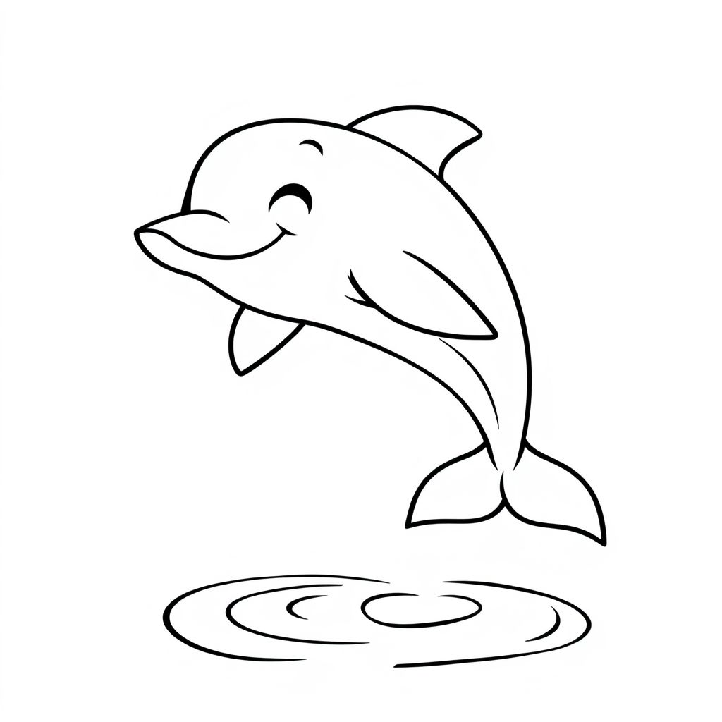 Cute dolphin jumping out of water, simple lines, children’s coloring book style