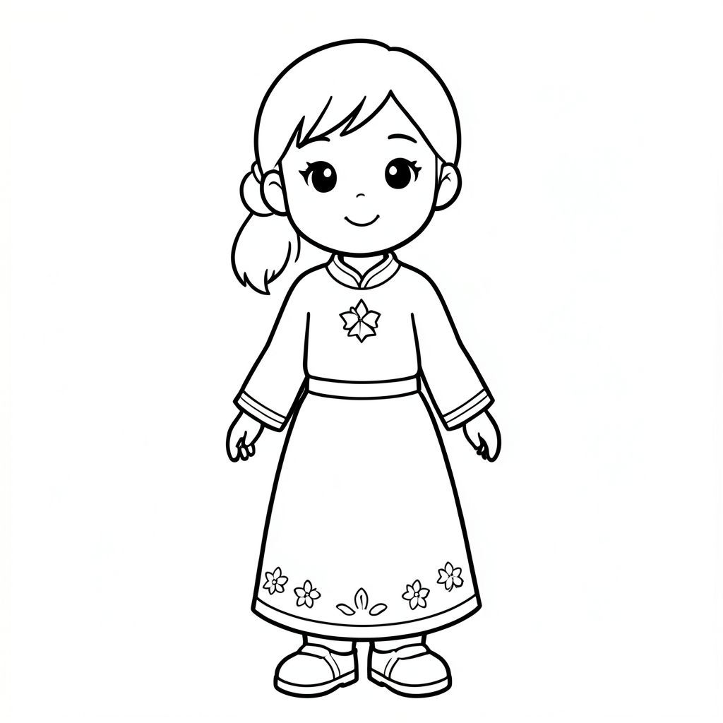 Drawing a Standing Girl Wearing Vietnamese Costume