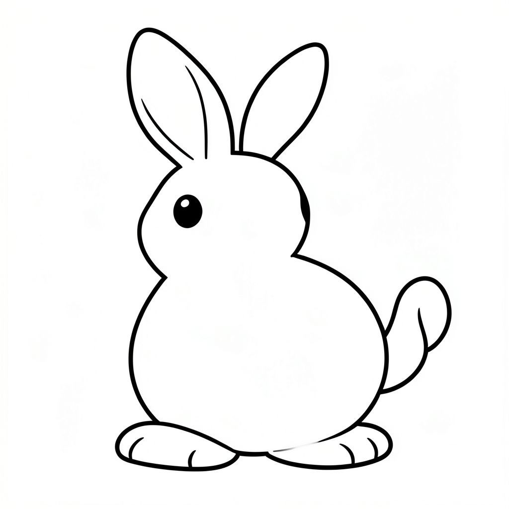 Happy bunny., black and white coloring page, lowbook style, line art, monochrome, uncolored, no shading, no grey, no fill, white background, solid black outlines, bold contrast, crisp lines, outline only, vector style, flat design, 2d, exactly one single tail, absolutely no black fill, pure white interior, no ink patches, no text, no words, no titles, absolutely no color, pure black and white lineart only