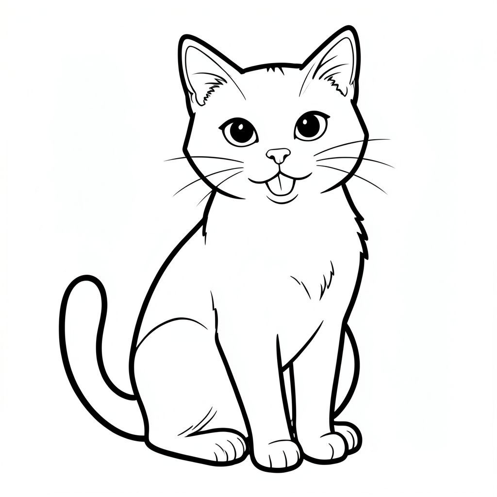 here’s a description of a coloring page, adhering to all your rules: Image Description: A realistic, clear-cut cat is the focal point. The cat is sitting upright, with a slightly angled head and a gentle curve to its back. Its fur is a soft, , with subtle shading to create depth. The cat’s face is focused, with large, expressive eyes and a small, subtle nose. Its mouth is slightly open, revealing a gentle tongue. The cat’s tail is a single, thick, black line extending from the back of its head. The tail is positioned slightly to the left of the cat’s body, creating a natural pose. The lines are bold and thick, creating a defined outline. The background is a plain, white space., black and white coloring page, lowbook style, line art, monochrome, uncolored, no shading, no grey, no fill, white background, outline only, vector style, flat design, 2d, exactly one single tail