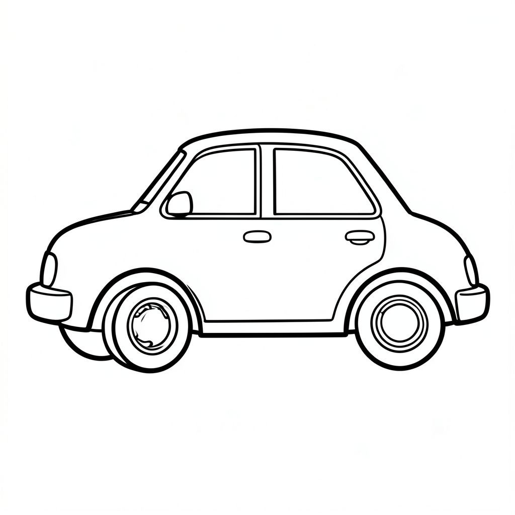 One car., black and white coloring page, lowbook style, line art, monochrome, uncolored, no shading, no grey, no fill, white background, solid black outlines, bold contrast, crisp lines, outline only, vector style, flat design, 2d, exactly one single tail, absolutely no black fill, pure white interior, no ink patches, no text, no words, no titles, absolutely no color, pure black and white lineart only