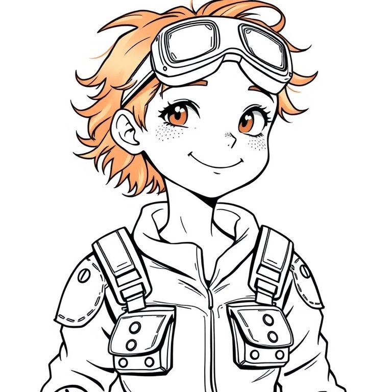 Short woman, with a perpetually cheerful face dotted with a smattering of freckles. Her hair is a messy, untamable bob of auburn curls, often tucked haphazardly under a pair of oversized welding goggles she wears on her forehead. She wears an intimidating mechanical power suit; hers is a custom-built,slightly scuffed ensemble of reinforced canvas leather patches and burnished copper plating over key joints. It looks more like something a brilliant, eccentric mechanic would cobble together for a day of extreme errand-running. It’s practical power armor, power armor is bulky, and covered in pockets of various sizes, each holding a tool, snack, or spare part., art by atey ghailan, painterly anime style at pixiv, art by kantoku, in art style of redjuice/necömi/rella/tiv pixiv collab, your name anime art style, masterpiece digital painting, exquisite lighting and composition, inspired by wlop art style, 8k, sharp, very detailed, high resolution, illustration.