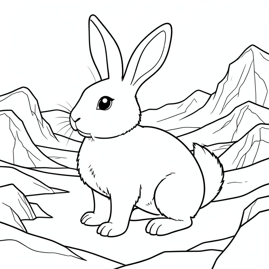 solo, single subject, one head, two eyes, two ears, four legs, one tail, anatomically correct, rabbit, snow, tundra, vast, empty, snow-covered, ice formations, frozen, landscape, desolate, bleak, coloring page, line art, white background, solo, single subject, anatomically correct, perfect anatomy