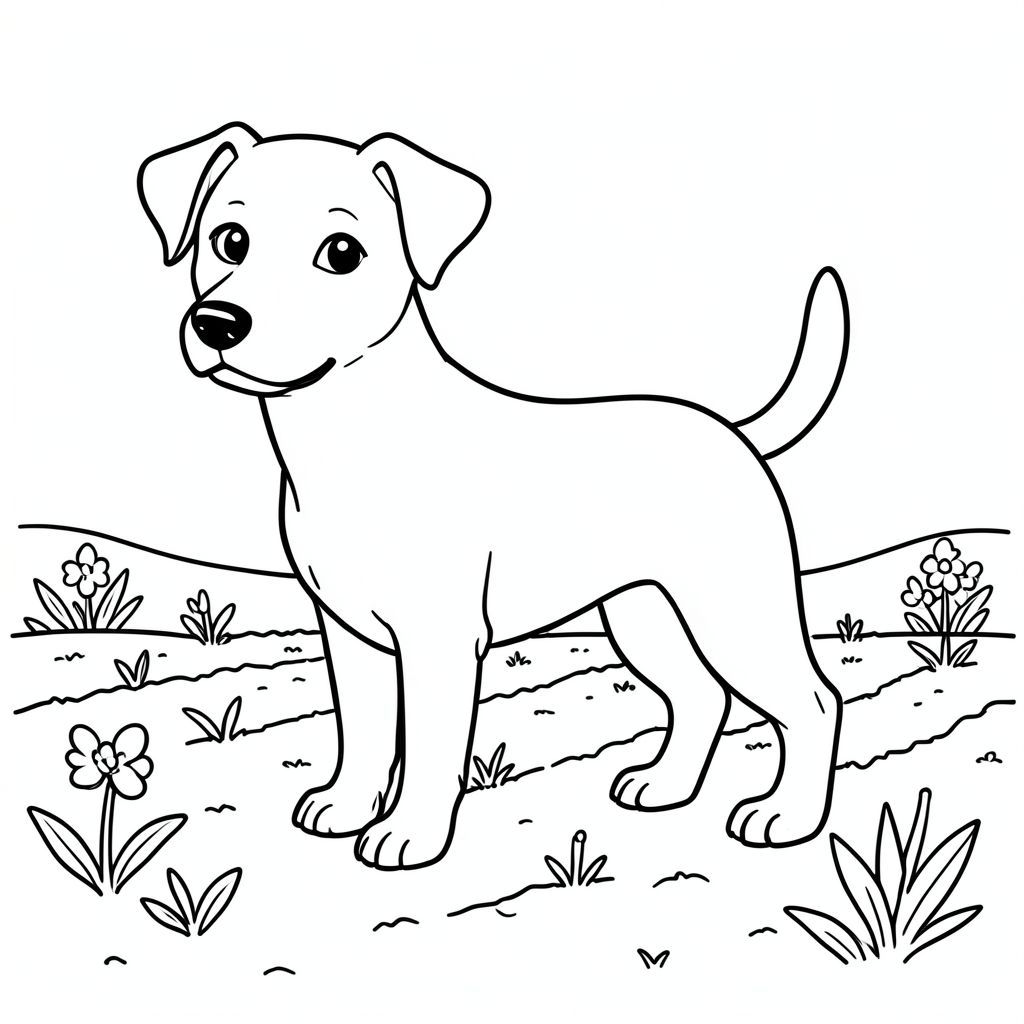 solo, single subject, one head, two eyes, two ears, four legs, one tail, natural proportions, proper scale in environment, anatomically correct, dog, plowed field, spring planting, simple, clean, small, background, doodle, hand-drawn, pure, coloring page, line art, white background, solo, single subject, anatomically correct, perfect anatomy