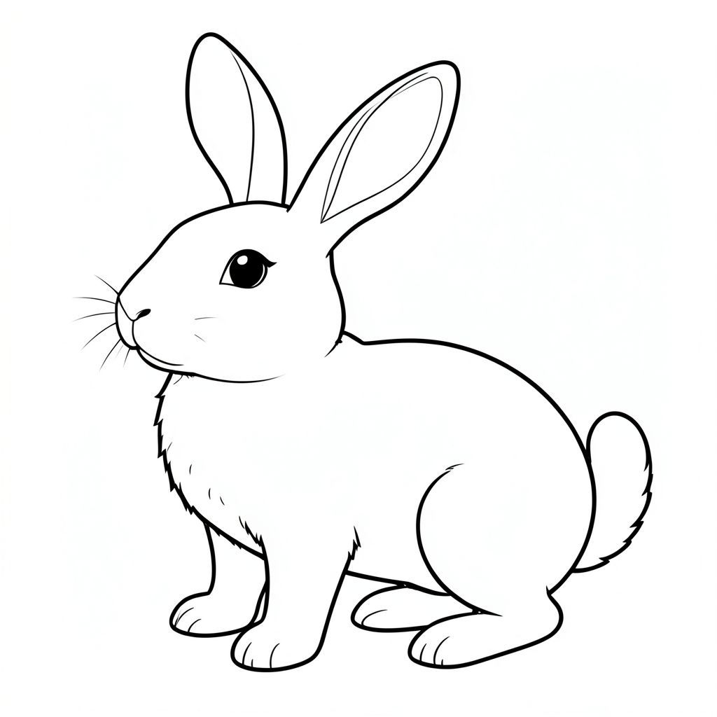 solo, single subject, one head, two eyes, two ears, four legs, one tail, natural proportions, proper scale in environment, anatomically correct, rabbit, , coloring page, line art, white background, solo, single subject, anatomically correct, perfect anatomy