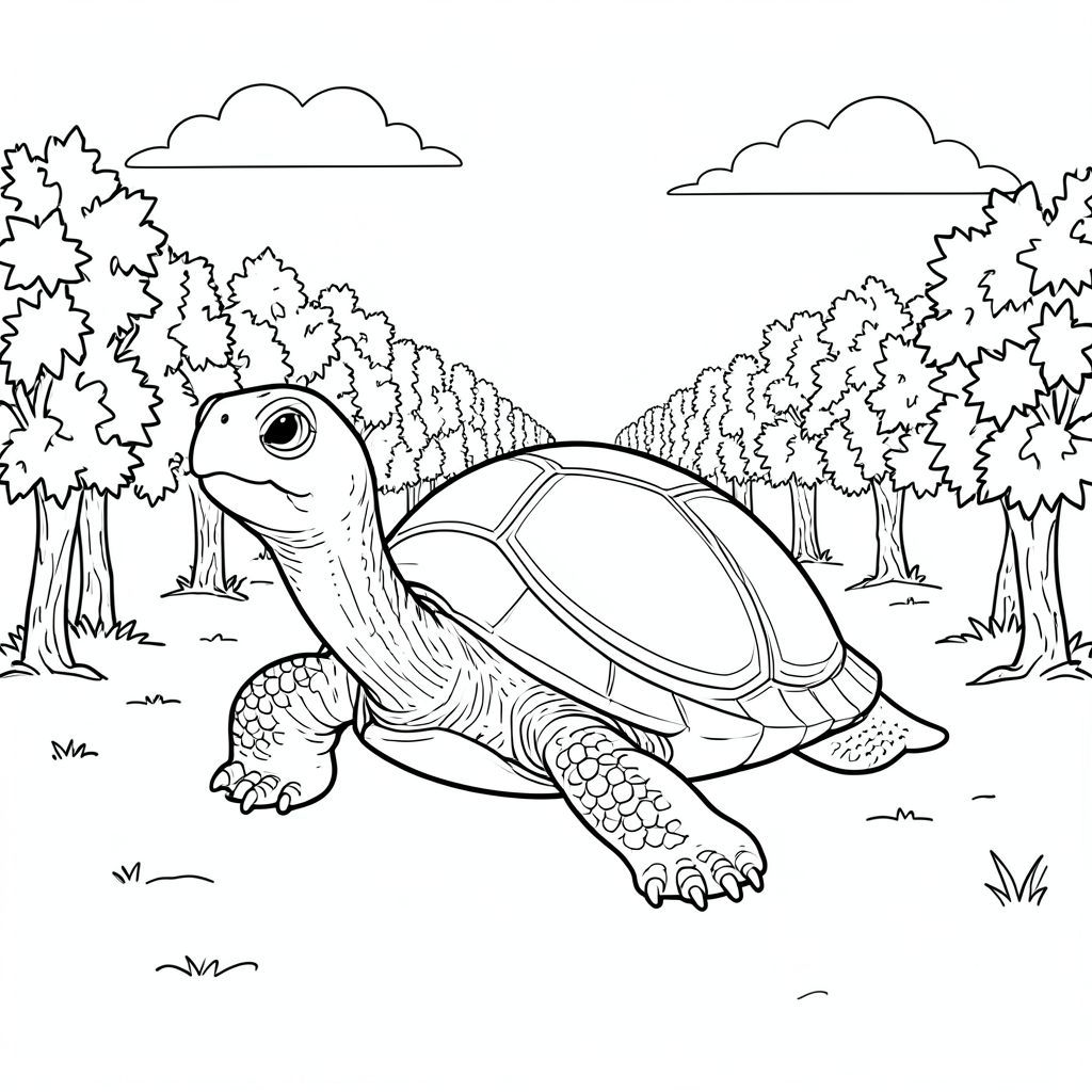 solo, single turtle, one head, two eyes, four legs, one shell, one tail, feet on solid ground, natural proportions, proper scale in environment, anatomically correct, turtle, Vineyard, rows, vines, warm, afternoon, sunlight, clear sky, simple background, clean, illustration, coloring page, line art, white background, solo, single subject, anatomically correct, perfect anatomy