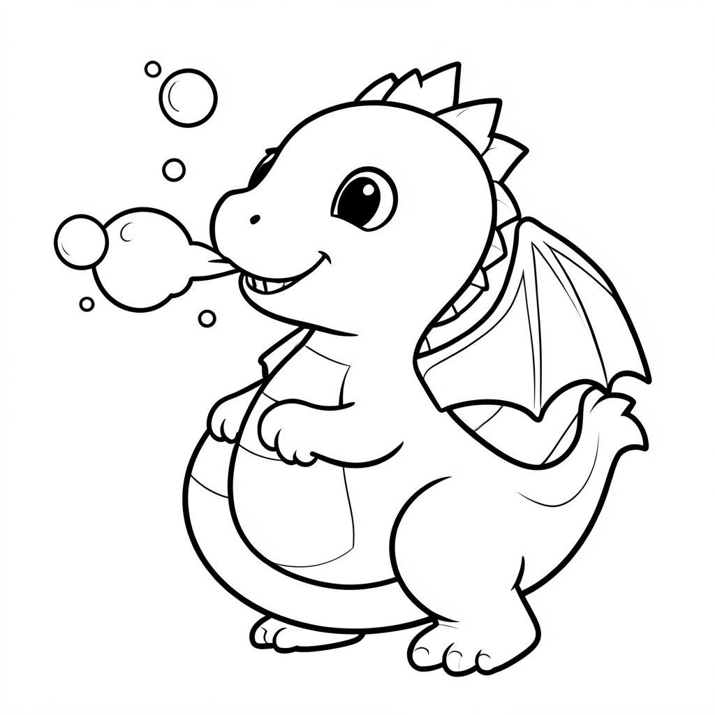 Bong bóng thở rồng thân thiện, phong cách hoạt hình, tranh tô màu trẻ em "
