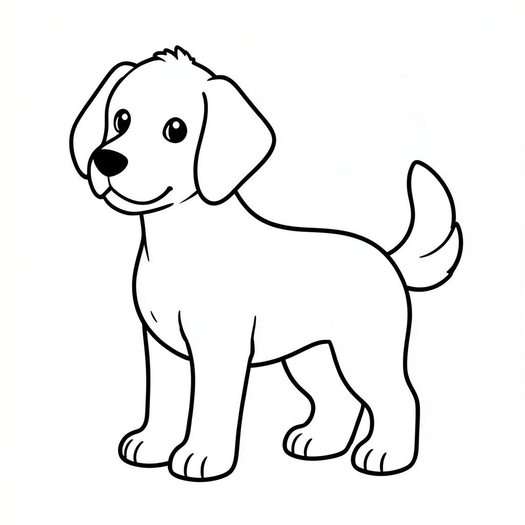 Chó, trang tô màu đen trắng, phong cách lowbook, nghệ thuật đường nét, đơn sắc, không màu, không bóng, không xám, không tô màu, nền trắng, chỉ phác thảo, phong cách vector, thiết kế phẳng, 2d