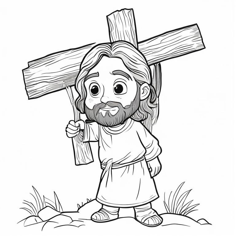 Chúa Giêsu chăm sóc cây thánh giá trên vai cho tôi Sách tô màu trẻ em, phong cách chibi