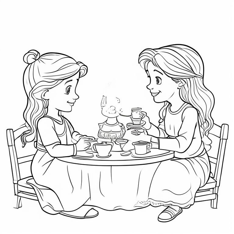 Chúa Giêsu và một công chúa nhỏ 6 tuổi đang tổ chức một bữa tiệc trà. Phong cách hoạt hình