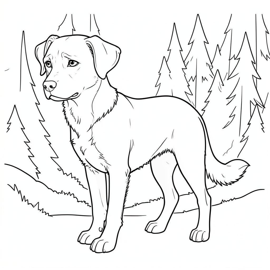 Bạn có muốn tôi giải thích chi tiết về bất kỳ khía cạnh cụ thể nào của mô tả này, có lẽ tập trung vào một chi tiết cụ thể về biểu cảm của hoặc loại nền rừng không?, trang màu, nghệ thuật đường nét, nền trắng