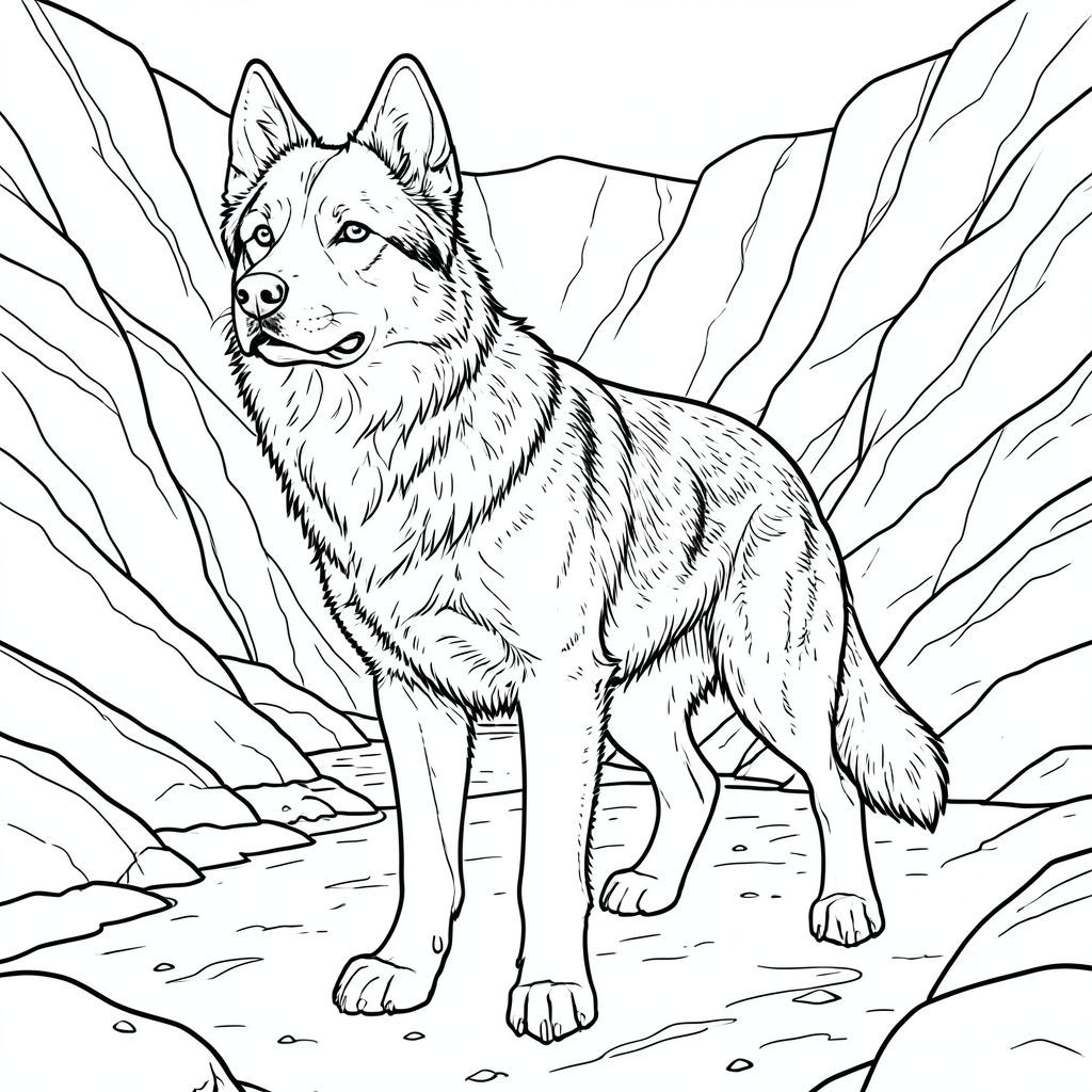 của hình ảnh, được thiết kế để dịch thành màu trắng tinh khiết , tập trung vào các chi tiết được yêu cầu. Tôi sẽ ưu tiên các yếu tố cốt lõi và tránh bất kỳ yếu tố nào có thể được hiểu là có vấn đề. Mô tả hình ảnh: Hình ảnh là một một đầu, chi tiết tỉ mỉ, ở giữa và chiếm phần lớn . là một giống chó có kích thước trung bình - hãy nghĩ đến một hỗn hợp chó chăn cừu Đức cứng cáp, hơi gầy - với khung hình được xây dựng mạnh mẽ. Bộ lông của nó là một , phong phú, gần như ở những vùng tối nhất, với các biến thể tinh tế về tông màu cho thấy kết cấu hơi phong hóa. Bộ lông dày đặc và hơi gợn sóng, tạo cảm giác chiều sâu. Đầu của là tâm điểm. Đó là một cái đầu hơi góc, với biểu cảm nổi bật, thông minh – một lông mày nhẹ nhàng, hơi nhăn nheo. Đôi mắt là một màu sắc đáng kinh ngạc, đậm đà, nằm trong hộp sọ. Mũi là một cái mũi , hơi sứt mẻ và miệng là một đường cong tinh tế, gần như không thể nhận thấy. Có một chút nhẹ, gần như không thể nhận thấy, được tạo ra bởi bộ lông xung quanh mõm. Cơ thể của chó thon dài và vạm vỡ, truyền tải cảm giác mạnh mẽ và kiên cường. Cột sống cong tinh tế, chân dày và khỏe, kết thúc bằng bàn chân hơi xòe ra. Bàn chân là một , tắt tiếng , với các vết lõm tinh tế. Chân hơi nghiêng, cho thấy dáng đi tự nhiên. Bối cảnh là một hẻm núi rộng lớn được chạm khắc thành một cảnh quan đá. Đá được xếp lớp bằng đá sa thạch phong hóa, với các vân thạch anh chạy qua nó. Lòng sông là một , bùn lầy, với dòng chảy nhẹ, chậm. Ấn tượng tổng thể là một cảnh quan cổ kính, ấn tượng. Có những khối đá tinh tế, có kết cấu ở phía xa, nhấn mạnh hơn nữa bản chất địa chất của khung cảnh. Màu sắc của đá bị tắt tiếng, chủ yếu là sắc thái của và, với một chút màu đất son ở một số khu vực. Không có màu sắc hoặc hoa văn. được đặt hơi lệch tâm, với đầu và vai của nó chiếm phần trên của . Nó hơi nhìn về phía trước, với một cái nghiêng đầu tinh tế, truyền tải cảm giác quan sát cẩn thận. Đuôi dài và dày, hơi cong xuống dưới, và là một , gần như , bóng của . Nó được giấu một chút bên dưới cơ thể, tạo ra một đường cong tinh tế. Không gian âm: Toàn bộ được lấp đầy bởi một , gần như tuyệt đối. Không có độ dốc, bóng hoặc điểm nổi bật. Khoảng trắng duy nhất là các khu vực mô tả lông chó và các khối đá. Phong cách: Nghệ thuật đường nét trắng và tinh khiết - Hình minh họa đơn, có độ chi tiết cao. Không đổ bóng, không có màu. Những cân nhắc chính cho việc tô màu: * Bộ lông cần có kết cấu rất tinh tế, gần như không thể nhận thấy - một làn sóng nhẹ hoặc gợn sóng - để tăng thêm chiều sâu. * Đầu và cơ thể của chó phải tinh tế, tạo cảm giác về khối lượng và chiều sâu. * phải là tiêu điểm rõ ràng, thu hút ánh nhìn của người xem. --- Tôi đã tập trung vào việc tạo ra một cảnh hấp dẫn về mặt hình ảnh và chi tiết, tuân thủ các yêu cầu nghiêm ngặt của lời nhắc. Tôi đã sử dụng ngôn ngữ mô tả để gợi lên cảm giác mạnh mẽ về chủ nghĩa hiện thực và bầu không khí. Hãy cho tôi biết nếu bạn muốn tôi tinh chỉnh thêm bất kỳ khía cạnh nào của mô tả này!, tô màu, nghệ thuật đường nét, nền trắng