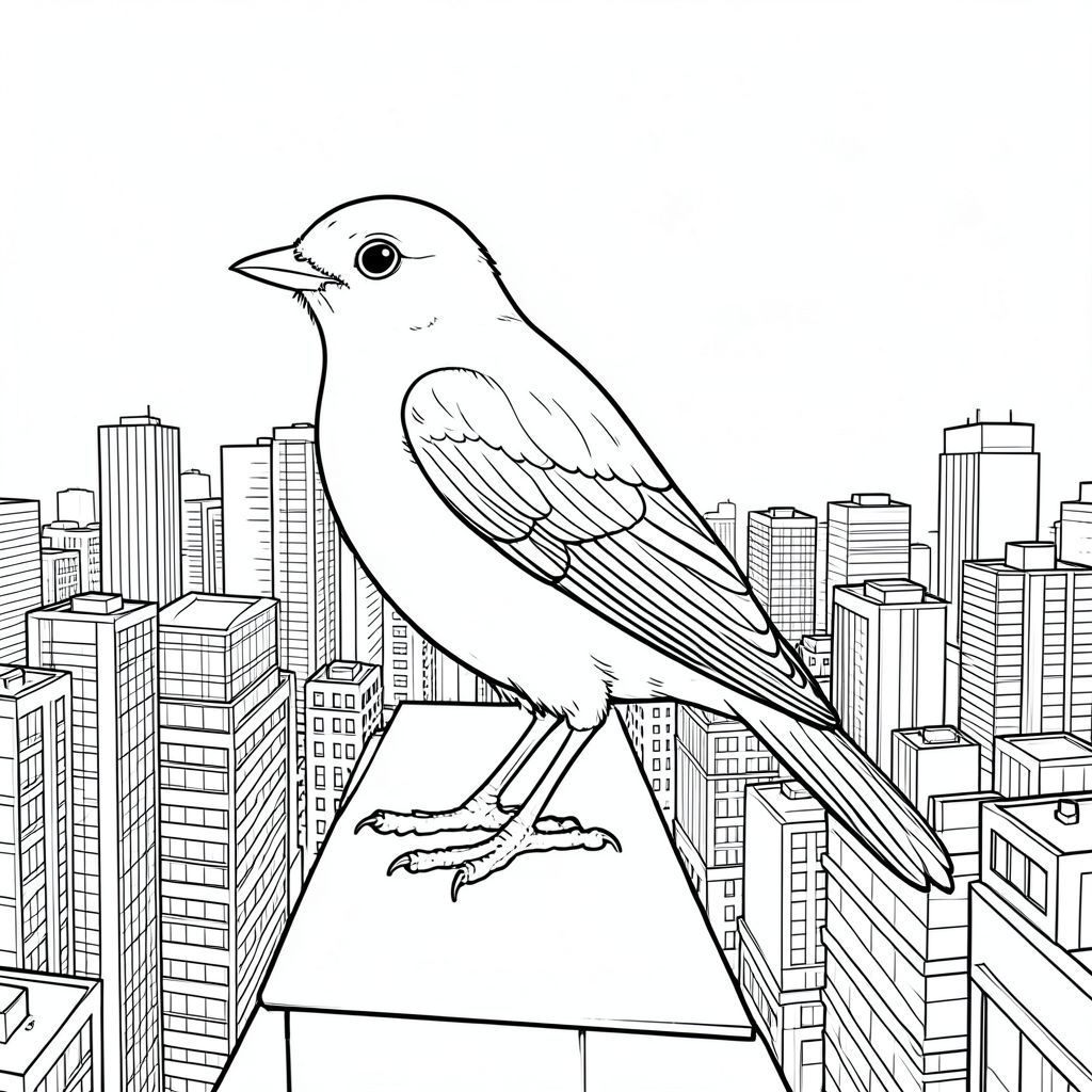 của hình ảnh, tiếp theo là phân tích chi tiết các yếu tố. Tôi đã tập trung vào việc tạo ra một hình minh họa đơn sắc, thực sự thực tế về một con chim, tuân thủ tất cả các ràng buộc của bạn. Mô tả: Hình ảnh là một cái nhìn toàn cảnh về đường chân trời trên tầng thượng của thành phố hiện đại. Khung cảnh được tắm trong một vùng hơi u ám, khuếch tán, tạo cảm giác sâu sắc và tĩnh lặng. Trọng tâm chính là một con chim duy nhất, có hình dạng hoàn hảo đậu trên một phần hẹp, hơi góc cạnh của mái nhà. Con chim: Setophaga ebura* ). Đó là một loài chim tương đối nhỏ, dài khoảng 12 inch. * Cơ thể của chim thuôn dài và hợp lý, với một đường cong nhẹ ở lưng. Bộ lông của nó là một , mượt như nhung, chuyển sang màu sáng hơn, gần như màu sắc trên ngực và bụng. Lông vũ được kết xuất tỉ mỉ, với những biến thể tinh tế về tông màu để tạo cảm giác kết cấu. * Con chim sở hữu hai chân mảnh mai, hình thành đầy đủ. Chân có màu trắng kem, với bóng mờ tinh tế để gợi ý hệ cơ bắp tinh tế. Các khớp được xác định một cách tinh tế. * Cánh lớn và tròn, có hình dạng hơi cong rõ rệt. Các lông chính là một màu phong phú, bão hòa , với một chút ánh sáng óng ánh dưới ánh sáng mặt trời. Đầu cánh hơi tròn, tạo đường cong nhẹ nhàng. * Mỏ ngắn, hơi cong và gần như phát sáng. Nó được đặt hơi về phía trước, mang lại cảm giác tỉnh táo. * Đuôi dài và hơi chẻ nhánh, gần như đầu. Lông đuôi dày đặc, tạo ra một hoa văn xoáy năng động. * Đầu nhỏ và hình tam giác, với mỏ nổi bật, hơi móc. Đôi mắt to, và tập trung mạnh mẽ, có vẻ như là một , thông minh . Mỏ được hình thành hoàn hảo, với một đường cong hơi hướng xuống. * Con chim đậu với đôi cánh hơi dang rộng, tạo cho nó cảm giác ổn định và duyên dáng. Nó hơi hướng sang trái, với một cái nghiêng đầu tinh tế. Nền: * Hậu cảnh là một cảnh quan thành phố phức tạp, nhiều lớp. Các tòa nhà là sự kết hợp của kính, thép và bê tông, với chiều cao và hình dạng khác nhau. Kiến trúc mang phong cách hiện đại, tối giản, với những đường nét sạch sẽ và hình dạng hình học. Có những phản chiếu tinh tế trên mái nhà, tạo ra hiệu ứng khí quyển mờ ảo. * Hai tháp nước nổi bật thống trị đường chân trời, mỗi tháp có một phong cách kiến trúc hơi khác nhau. Chúng được hiển thị dưới dạng hình tròn, mịn với độ dốc tinh tế của và , gợi ý nước và . Chúng được đặt hơi phía sau con chim, tạo cảm giác có chiều sâu. * Bầu trời là một , u ám, với một chút sương mù. Có một vài đám mây mờ nhạt, làm tăng thêm độ sâu của khí quyển. * Chủ yếu là tông màu lạnh - xanh lam, xám và trắng - với những gợi ý tinh tế về tông màu ấm từ mặt trời. Phong cách & Chi tiết: * Toàn bộ hình ảnh được thực hiện trong một bản vẽ đường thẳng liên tục. Không có gradient, đổ bóng hoặc tô màu. * Toàn bộ hình ảnh được hiển thị bằng màu trắng tinh khiết. * Hình ảnh được tỉ mỉ chi tiết, tạo cảm giác ba chiều. Kết cấu của lông vũ, hình ảnh phản chiếu trên mái nhà và các biến thể tinh tế trong vật liệu xây dựng đều được hiển thị với độ chính xác cao. * Con chim là tiêu điểm trung tâm, được đặt hơi lệch tâm để tạo sự thú vị về thị giác. Nền cung cấp bối cảnh và chiều sâu, thu hút ánh nhìn của người xem vào con chim. Lưu ý quan trọng: Mục tiêu là tạo ra một đại diện của con chim, không phải để thêm bất kỳ cách diễn giải hoặc tô điểm nghệ thuật nào. Trọng tâm chỉ là mô tả chính xác đối tượng.