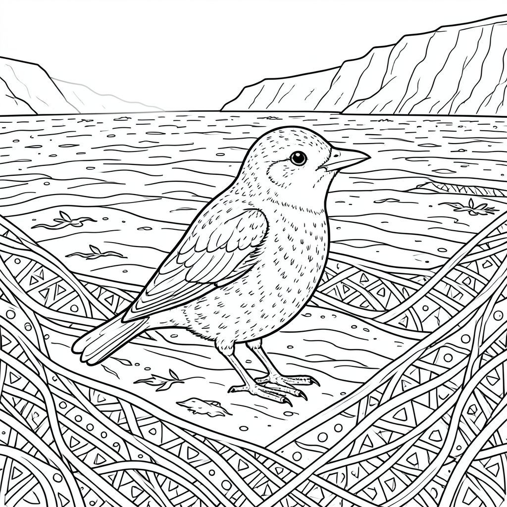 của màu PURE AND WHITE, kết hợp các thông số kỹ thuật của bạn. Tôi sẽ tập trung vào việc tạo ra một cảnh chi tiết, hấp dẫn mà không có bất kỳ bóng mờ hay màu sắc nào. Mô tả hình ảnh: Hình ảnh là một mô hình Zentangle được đóng gói chặt chẽ, gần như ám ảnh. Nó xoay quanh một con chim duy nhất, được kết xuất hoàn hảo. Con chim được đặt hơi lệch tâm, đầu nghiêng về phía người xem, mang lại cảm giác cảnh giác. Nó hơi hướng về bên phải, với độ nghiêng tinh tế về phía đầu. Phân tích cảnh chi tiết: * Hậu cảnh là một vùng cát ướt rộng lớn, hơi nhấp nhô. Nó không phải là một bề mặt nhẵn, đồng nhất; Có những gợn sóng tinh tế và sự thay đổi về kết cấu, gợi ý một làn gió nhẹ. Cát có màu trầm, có ánh sáng nhẹ phản chiếu bầu trời u ám. Một vài cụm rong biển nhỏ, gần như không thể nhận thấy, nằm rải rác trên cát. Có một đường rất mờ nhạt, mờ ảo đại diện cho một mặt vách đá ở phía xa, ở hậu cảnh phía xa. Ấn tượng chung là một bãi biển hơi ẩm ướt ven biển. * Con chim là một loài chim biển nhỏ. Bộ lông của nó có kết cấu tinh tế - những mảng nhỏ, không đều màu sẫm hơn và a , gần như trên ngực và cánh trên của nó. Mỏ là một sắc nhọn, . Mắt là một, tập trung . Con chim hơi hướng về bên phải, với đôi cánh hơi nghiêng xuống dưới. Tư thế của nó cảnh giác và hơi đĩnh đạc, cho thấy nó đang khảo sát môi trường xung quanh. Con chim có kích thước gần bằng một con chim đỏ. * Toàn bộ hình ảnh được bao phủ bởi một mô hình dày đặc, phức tạp của các đường lồng vào nhau. Các đường không đồng nhất; Chúng khác nhau về độ dày và hướng, tạo ra một hiệu ứng phức tạp, nhiều lớp. Có những họa tiết nhỏ, lặp đi lặp lại - hình tam giác và hình chữ nhật nhỏ, hơi dài - nằm rải rác khắp hoa văn. Các đường nét chủ yếu là thẳng, nhưng có những đường cong và góc cạnh tinh tế, tạo cảm giác có chiều sâu và chuyển động. Mật độ tổng thể của hoa văn là cực kỳ cao, gần như là một đại diện xúc giác của con chim. Có những 'bong bóng' màu trắng nhỏ, gần như vô hình, bên trong các đường nét, làm tăng thêm sự phức tạp. không* có bóng râm. Không có độ dốc, vùng sáng hoặc bóng tối. Các đường thẳng hoàn hảo và cách đều nhau. Bầu Không Khí Tổng Quát: Ảnh gợi lên cảm giác quan sát yên tĩnh và vẻ đẹp hơi u sầu. Bản chất đơn sắc, rõ ràng của hoa văn nhấn mạnh sự hiện diện đơn độc của loài chim.