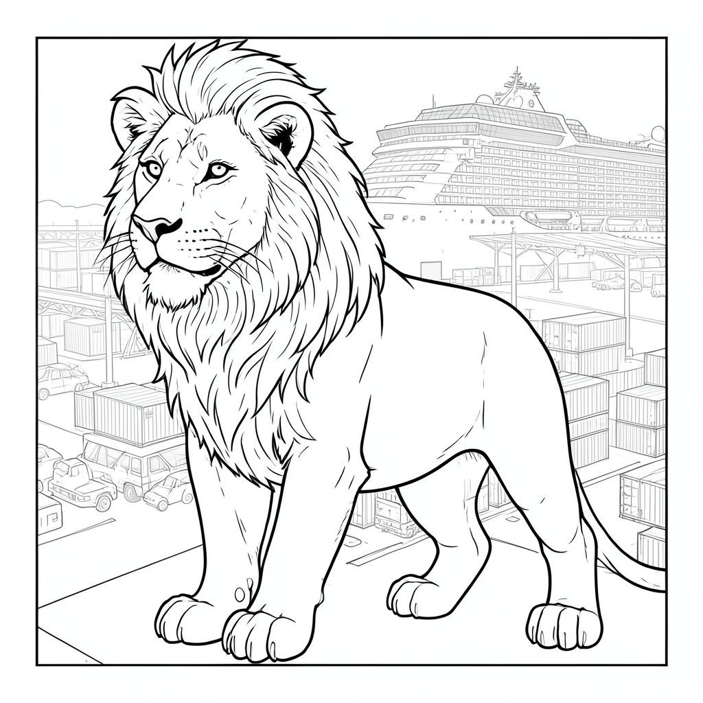 của màu PURE AND WHITE, tập trung vào các yếu tố được yêu cầu và hướng đến kết xuất chân thực, chi tiết cao của một con sư tử duy nhất, ở giữa và nổi bật. Tôi sẽ ưu tiên các yếu tố cốt lõi và tránh bất kỳ yếu tố nào vi phạm các ràng buộc. Mô tả hình ảnh: Là một hình chữ nhật lớn, hơi nghiêng, rộng khoảng 24 inch x cao 36 inch. Hậu cảnh là một khung cảnh được kết xuất tỉ mỉ, hơi mờ, của một bến cảng tàu du lịch hiện đại nhộn nhịp. Ấn tượng tổng thể là một trong những sự hỗn loạn được kiểm soát - một môi trường bận rộn, nhiều lớp. Sư tử: Con sư tử được đặt hơi lệch tâm, chính giữa khoảng 1/3 đường trên đỉnh của . Nó hơi hướng về bên trái, với tư thế tự tin, hơi vương giả. Sư tử là một con đực trưởng thành, dài khoảng 6 feet. Bộ lông của nó có màu nâu nâu đậm đà, với những thay đổi tinh tế về bóng râm cho thấy tuổi tác và kết cấu. Bộ lông dày đặc và hơi xù, đặc biệt là quanh cổ và vai. Bờm dày và bồng bềnh, kéo dài xuống cổ và tạo thành một đường cong nhẹ nhàng. Đôi mắt là một màu sắc xuyên thấu, thông minh, nằm trong hộp sọ. Có những nếp nhăn tinh tế xung quanh mõm, làm tăng thêm tính chân thực. Mũi hơi dài và răng hơi lộ ra, gợi ý về một vết cắn mạnh mẽ. Bàn chân sư tử lớn và hơi góc cạnh, với kết cấu tinh tế, tự nhiên. Chân dày và vạm vỡ, kết thúc bằng bàn chân lớn, có đệm. Có một chút, gần như không thể nhận thấy, được đúc bởi bờm, làm tăng thêm cảm giác ba chiều. Bối cảnh - Bến cảng tàu du lịch: Hậu cảnh là một mô tả dày đặc, nhiều lớp của một bến cảng tàu du lịch. Đó là một môi trường bận rộn, hơi choáng ngợp. Cảnh được hiển thị theo phong cách hơi mờ, không khí, tạo cảm giác chiều sâu. Trọng tâm chính là một con tàu du lịch lớn, hiện đại, neo đậu nổi bật ở cuối khung hình. Đó là một con tàu lớn, kiểu dáng đẹp, với thân tàu được đánh bóng và cấu trúc thượng tầng nổi bật. Cửa sổ của con tàu lớn và phản chiếu , tạo hiệu ứng. * Khu vực bến tàu chứa đầy vô số container vận chuyển xếp chồng lên nhau gọn gàng. Một số mở một phần, để lộ thoáng qua hàng hóa. Các thùng chứa là sự kết hợp của nhiều kích cỡ và vật liệu khác nhau, tạo ra một bề mặt bận rộn, có kết cấu. * Một số nền tảng có thể nhìn thấy, được xây dựng bằng, thép gia cố. Chúng hơi góc cạnh, cho thấy cách bố trí bến tàu phức tạp. * Một dòng hành khách nhỏ, rực rỡ đang di chuyển dọc theo các lối đi. Chúng được mô tả như những hình dạng không rõ ràng, tập trung vào chuyển động của chúng và cách chúng tương tác với môi trường. Có một vài xe đẩy hành lý nhỏ, sáng sủa di chuyển dọc theo lối đi. * Là sự kết hợp giữa nhân tạo và tự nhiên. Ánh sáng lớn chiếu sáng con tàu, đổ bóng mạnh. Mặt trời được đặt hơi lệch sang trái, tạo ra một điểm nhấn tinh tế trên thân tàu. Có một số trục khuếch tán tinh tế xuyên qua hậu cảnh, tạo thêm cảm giác chiều sâu. * Bảng màu tổng thể chủ yếu là xanh lam, xám và nâu, với các điểm nhấn là màu vàng và cam ấm áp từ . Màu sắc bị tắt và hơi bão hòa để tạo cảm giác chân thực. Không gian âm: Toàn bộ được lấp đầy bởi một lượng không gian âm đáng kể. Điều này rất quan trọng đối với hiệu ứng của một hình ảnh chân thực, chi tiết. Phong cách: Minh họa nghệ thuật đường nét tinh khiết và trắng. Không bóng, không màu. Những điều cần cân nhắc chính để kết xuất: * Bộ lông của sư tử cần có kết cấu tinh tế, hơi thô. * Nguồn rất quan trọng. Nó cần được định vị cẩn thận để tạo ra bóng và điểm nổi bật mạnh mẽ, xác định hình dạng của sư tử và thêm chiều sâu. * Các chi tiết về cấu trúc của con tàu, hành khách và bộ lông của sư tử là cực kỳ quan trọng để tạo ra một khung cảnh đáng tin cậy và đắm chìm.