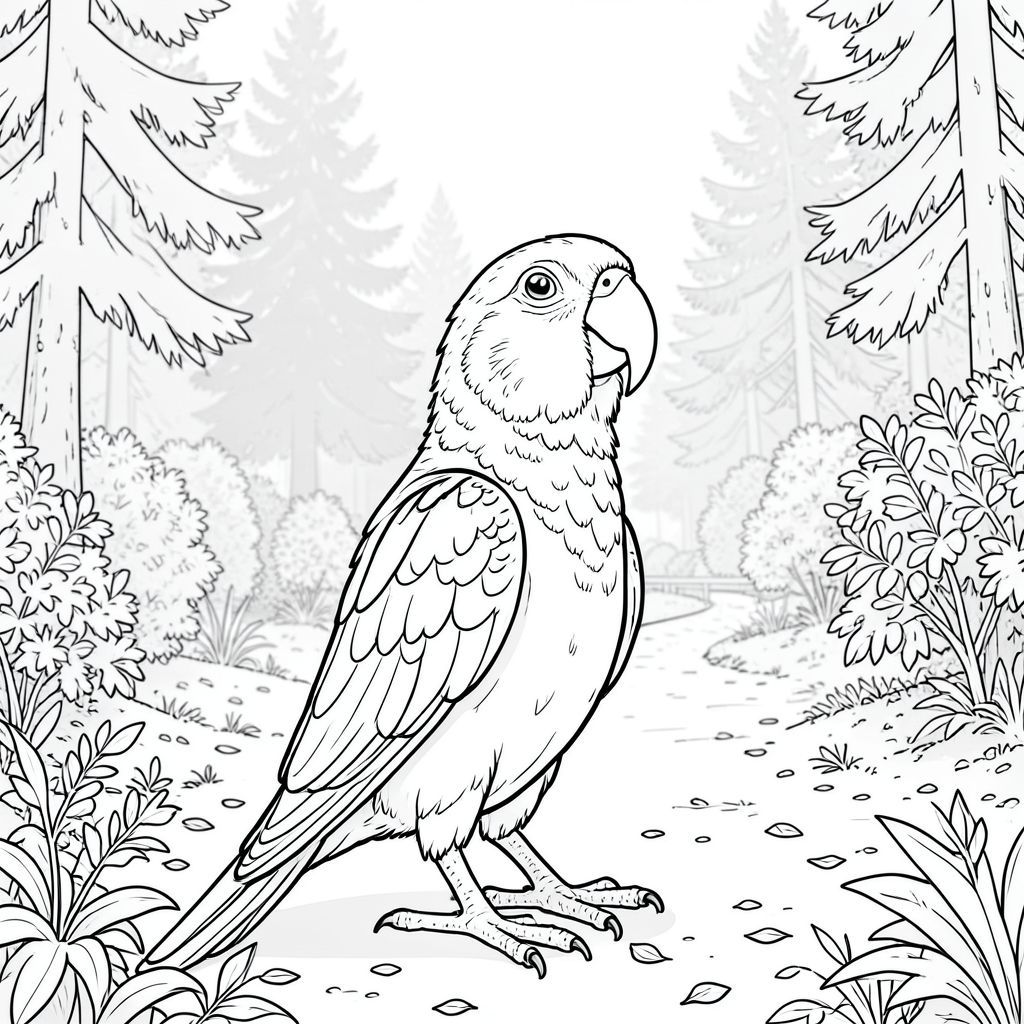 Bạn có muốn tôi tinh chỉnh bất kỳ khía cạnh nào của mô tả này, có thể thêm chi tiết cho nền hoặc tư thế của con chim không?, trang màu, nghệ thuật đường nét, nền trắng