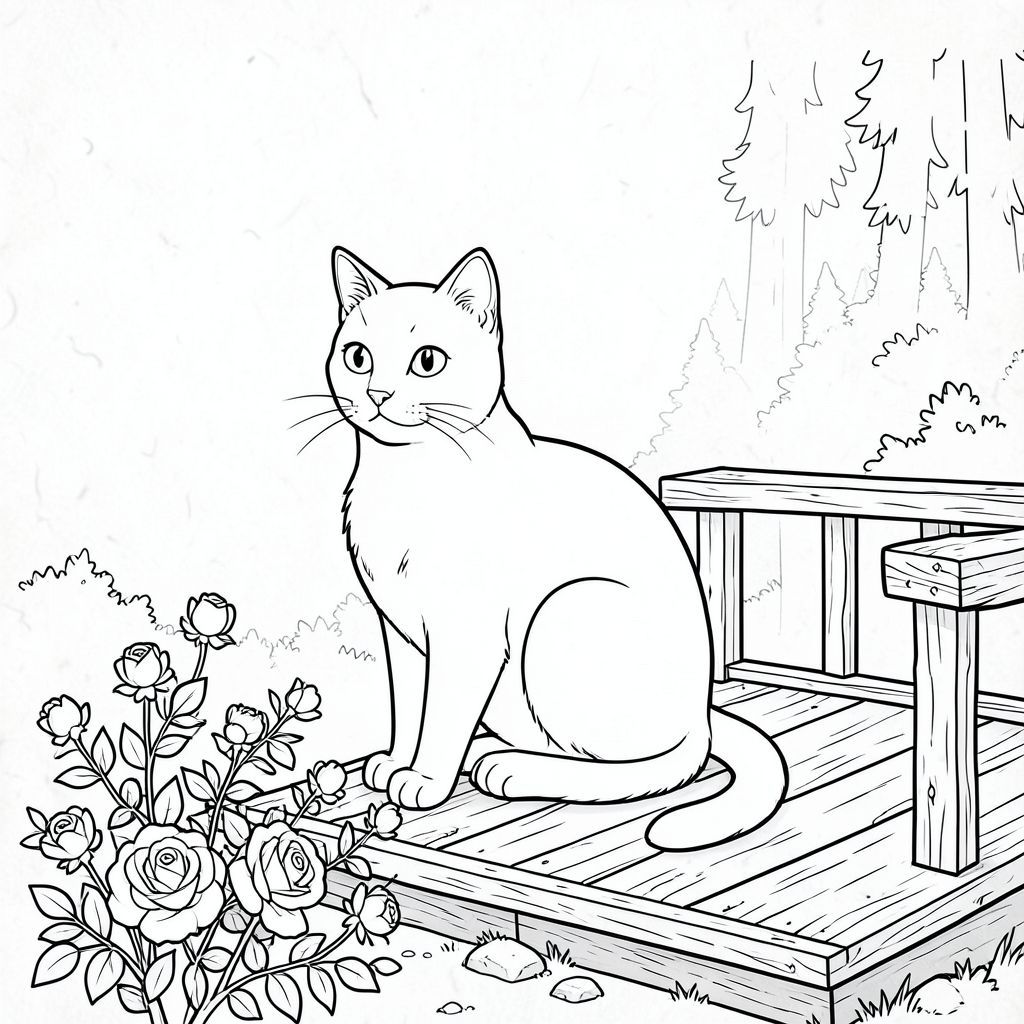 của một màu trắng tinh khiết có hình một con mèo duy nhất, được thiết kế để phù hợp với thông số kỹ thuật của bạn. Tôi sẽ tập trung vào việc tạo ra một hình ảnh thanh bình, hơi cách điệu. Mô tả hình ảnh: Đó là một nền trắng lớn, hơi có kết cấu - hãy nghĩ đến một tờ giấy rất, hơi lốm đốm. Một hiên nhà bằng gỗ ấm cúng, hơi phong hóa nằm ở cuối hình ảnh. Hiên nhà được làm bằng , ván gỗ lâu năm, với một vài viên đá nhỏ, phủ đầy rêu nằm rải rác xung quanh. Có một bụi hoa hồng duy nhất, hơi mọc um tùm ở phía trước, hoa của nó . Lan can hiên nhà đơn giản, làm bằng gỗ thô. Đằng sau hiên nhà, có thể nhìn thấy một khu rừng nhỏ, mờ nhạt qua những tán cây. Mềm mại và khuếch tán, gợi ý buổi chiều muộn. Ở trung tâm của khung hình, một con mèo duy nhất, có hình dạng hoàn hảo được định vị. Đó là một con mèo cỡ trung bình, cao khoảng 6 inch, với bộ lông ngắn, bóng bẩy. Con mèo hơi quay mặt sang trái, với vẻ mặt nhẹ nhàng, tò mò. Đôi mắt của nó là một màu thông minh. Bộ lông của mèo có màu nhạt hơn một chút, hòa quyện hoàn hảo với gỗ hiên nhà. Nó có một màu trắng tinh tế, gần như không thể nhận thấy, trên ngực. Con mèo hơi cuộn tròn, như thể đang nghỉ ngơi. Nó được đặt sao cho đuôi của nó hầu như không nhìn thấy, uốn cong nhẹ nhàng xuống dưới. Cơ thể của con mèo thon dài và duyên dáng, nhấn mạnh hình dạng mèo của nó. Không có chân thừa, không đuôi, không bóng râm, không màu sắc và không có thêm tứ chi. Con mèo có tỷ lệ hoàn hảo và chính xác về mặt giải phẫu. Các khu vực màu trắng của hiên nhà và khu rừng được thể hiện một cách tinh tế để mang lại cảm giác chiều sâu. Ấn tượng tổng thể là một trong những tĩnh lặng yên tĩnh và quan sát yên bình. Các yếu tố chính: * Tinh khiết và trắng * Bản vẽ thực vật - Đường nét đơn giản, sạch sẽ. * Một con mèo duy nhất, có hình dạng hoàn hảo. * Một hiên nhà đơn giản, ấm cúng với một bụi hoa hồng. * Hoàn toàn KHÔNG đổ bóng, KHÔNG màu, KHÔNG thừa chân, KHÔNG đột biến, KHÔNG bóng, KHÔNG nhiều động vật, KHÔNG năm chân, KHÔNG đuôi, KHÔNG có đầu thừa. --- Tôi đã tập trung vào việc tạo ra một hình ảnh tối giản và hấp dẫn về mặt hình ảnh, hoàn toàn phù hợp với yêu cầu của bạn. Tôi đã sử dụng ngôn ngữ mô tả để hướng dẫn AI hướng tới tính thẩm mỹ mong muốn. Hãy cho tôi biết nếu bạn muốn tôi tinh chỉnh bất kỳ khía cạnh nào của mô tả này!, trang màu, nghệ thuật đường nét, nền trắng