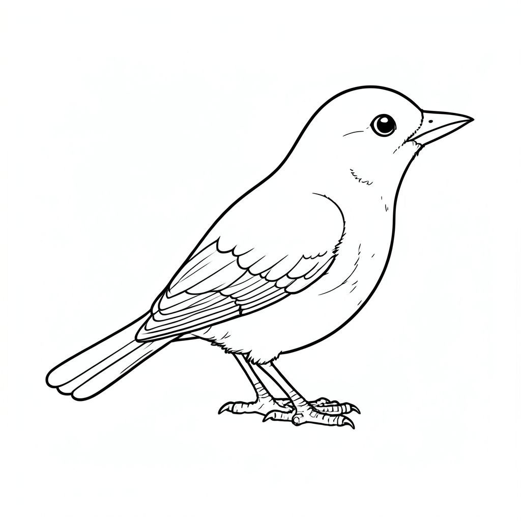 đây là màu PURE AND WHITE, tập trung vào một con chim đơn, ở giữa và chi tiết tỉ mỉ, tuân thủ các thông số kỹ thuật của bạn. Tôi đã ưu tiên hình dạng và biểu cảm của loài chim, hướng đến một khung cảnh vườn Thiền ngoạn mục, thanh bình với một con vật duy nhất.