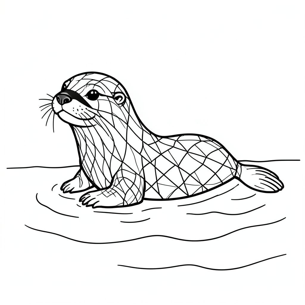 Đây là mô tả tô màu, tiếp theo là tạo hình ảnh theo các quy tắc nghiêm ngặt của bạn. Mô tả tô màu: Một con rái cá tinh nghịch nhẹ nhàng trôi nổi trên một đại dương yên tĩnh. Bộ lông của rái cá được phác thảo bằng hiệu ứng kính màu, tạo ra một hoa văn hình học đẹp mắt. Nước đơn giản và trong vắt, với một vài đường sóng tinh tế. Đây là một khung cảnh thú vị để các nghệ sĩ trẻ mang vào cuộc sống với những màu sắc yêu thích của họ! <start_of_image>Otter_Ocean.png