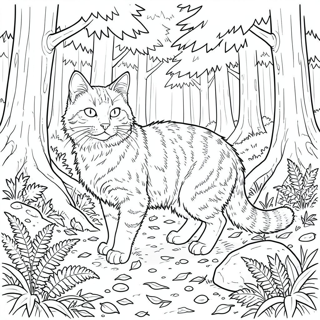 Đây là quy trình. Hãy bắt đầu với con mèo. MÈO là một con mướp lớn, hoang dã, dài khoảng 18 inch từ mũi đến đuôi. Bộ lông của nó là một , phong phú, gần như , với các hoa văn tinh tế, thay đổi dọc theo cột sống và mặt dưới của đuôi. Bộ lông rậm rạp và hơi xù lông, tạo cho nó một vẻ ngoài hơi hoang dã. Khuôn mặt của nó đặc biệt nổi bật - mõm hẹp, hơi dẹt, đôi mắt to, thông minh đặt trong khuôn mặt và mũi hơi dẹt rõ rệt. Tai to, hình tam giác và nhọn, với một đường cong tinh tế đến đầu. Râu của nó dài, dày và , kéo dài gần đến chóp mũi. Một vết sẹo nhỏ, gần như không thể nhận thấy chạy chéo qua mắt trái của nó, một đường thẳng. Bàn chân của nó lớn và hơi có màng, với móng vuốt dài và hơi cong. Tư thế là một trong những sự tỉnh táo yên tĩnh - hơi nghiêng người về phía trước, một sự co giật tinh tế của đuôi. Có một cảm giác tĩnh lặng cổ xưa, cảnh giác.
