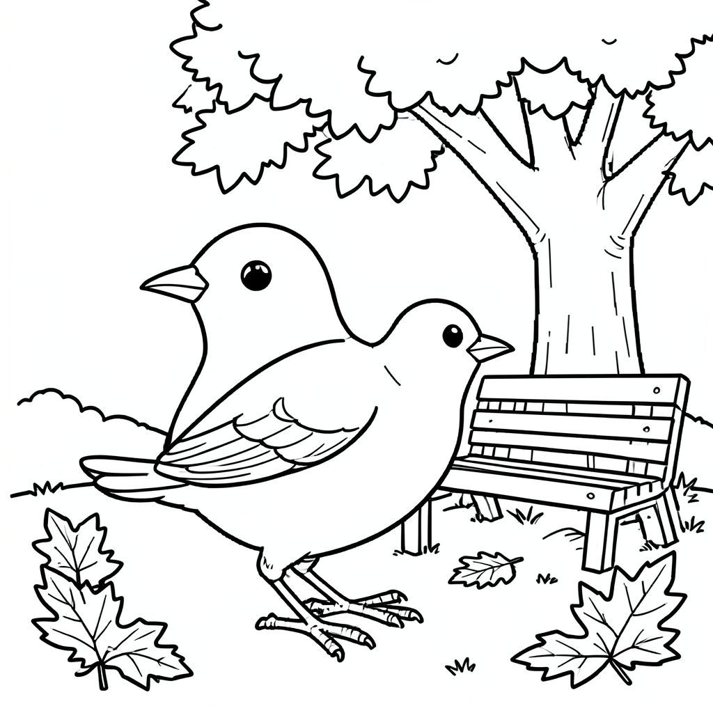 Độc lập, một con chim, một đầu, hai mắt, một mỏ, hai cánh, hai chân, một đuôi, tỷ lệ tự nhiên, quy mô thích hợp trong môi trường, đúng giải phẫu, chim, cây sồi, băng ghế công viên, lá mùa thu, nền đơn giản, đường sạch, phong cách cổ điển, nghệ thuật pixel, sách truyện, tinh khiết và, trang màu, nghệ thuật đường, nền trắng, solo, chủ đề đơn, chính xác về mặt giải phẫu, giải phẫu hoàn hảo