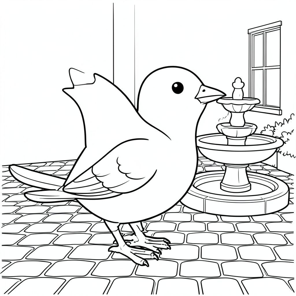 Độc lập, một con chim, một đầu, hai mắt, một mỏ, hai cánh, hai chân, một đuôi, tỷ lệ tự nhiên, quy mô thích hợp trong môi trường, đúng giải phẫu, chim, sân nhỏ, đá cuội, đài phun nước, nền đơn giản, môi trường sạch sẽ, gạch trắng, nhỏ, yên bình, yên tĩnh, thanh thản, trang màu, nghệ thuật đường, nền trắng, solo, chủ đề đơn, chính xác về mặt giải phẫu, giải phẫu hoàn hảo