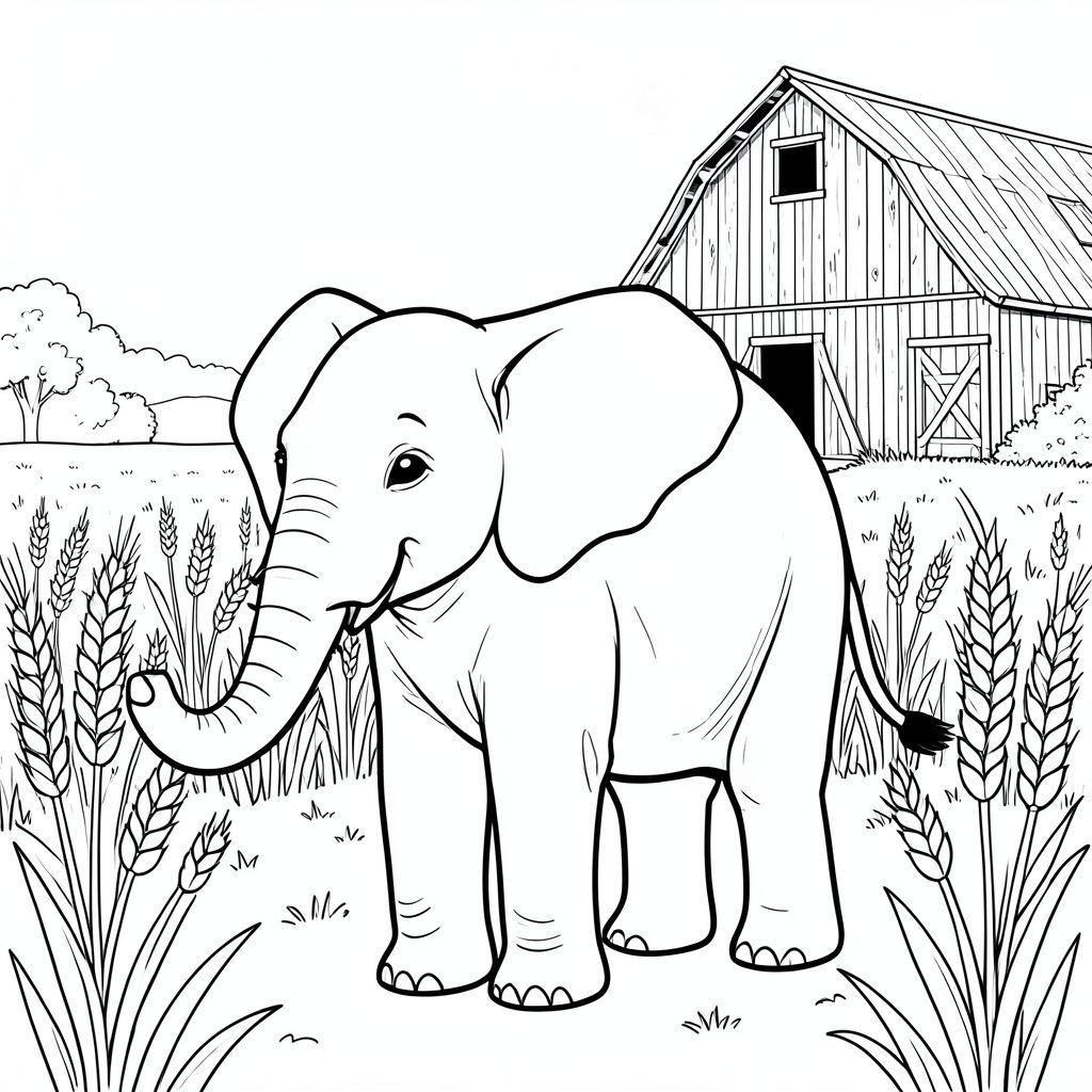 Độc lập, một con voi, một đầu, hai mắt, hai tai lớn, một thân cây, bốn chân, một cái đuôi, đúng về mặt giải phẫu, voi, chuồng trại mộc mạc, gỗ cũ, lúa mì, cánh đồng, mở rộng, Ánh sáng mặt trời, ấm áp, mờ mịt, Kết cấu, trang màu, nghệ thuật đường, nền trắng, solo, chủ đề đơn, chính xác về mặt giải phẫu, giải phẫu hoàn hảo
