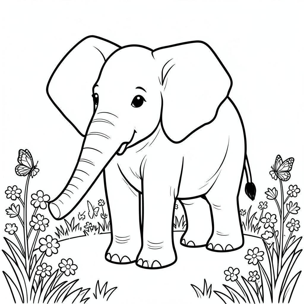 Độc lập, một con voi, một đầu, hai mắt, hai tai lớn, một thân cây, bốn chân, một đuôi, chân trên mặt đất vững chắc, tỷ lệ tự nhiên, quy mô thích hợp trong môi trường, đúng về mặt giải phẫu, voi, hoa, bướm, hoa dại, vườn, ánh sáng mặt trời, cỏ, đơn giản, lý lịch, dọn dẹp, sách truyện, trang tô màu, nghệ thuật đường, nền trắng, Solo, chủ đề đơn, đúng về mặt giải phẫu, Giải phẫu hoàn hảo