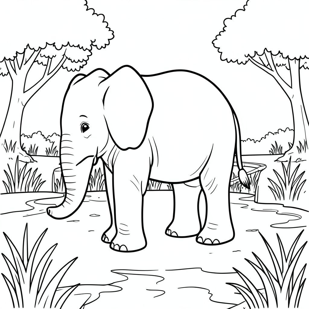 Độc lập, một con voi, một đầu, hai mắt, hai tai lớn, một thân cây, bốn chân, một đuôi, chân trên nền vững chắc, tỷ lệ tự nhiên, quy mô thích hợp trong môi trường, đúng về mặt giải phẫu, voi, đầm lầy, đất ngập nước, lối đi lát ván, con đường, đơn giản, làm sạch, Nước, bùn, cỏ, cây, trang màu, nghệ thuật đường, nền trắng, Solo, chủ đề đơn, đúng về mặt giải phẫu, giải phẫu hoàn hảo