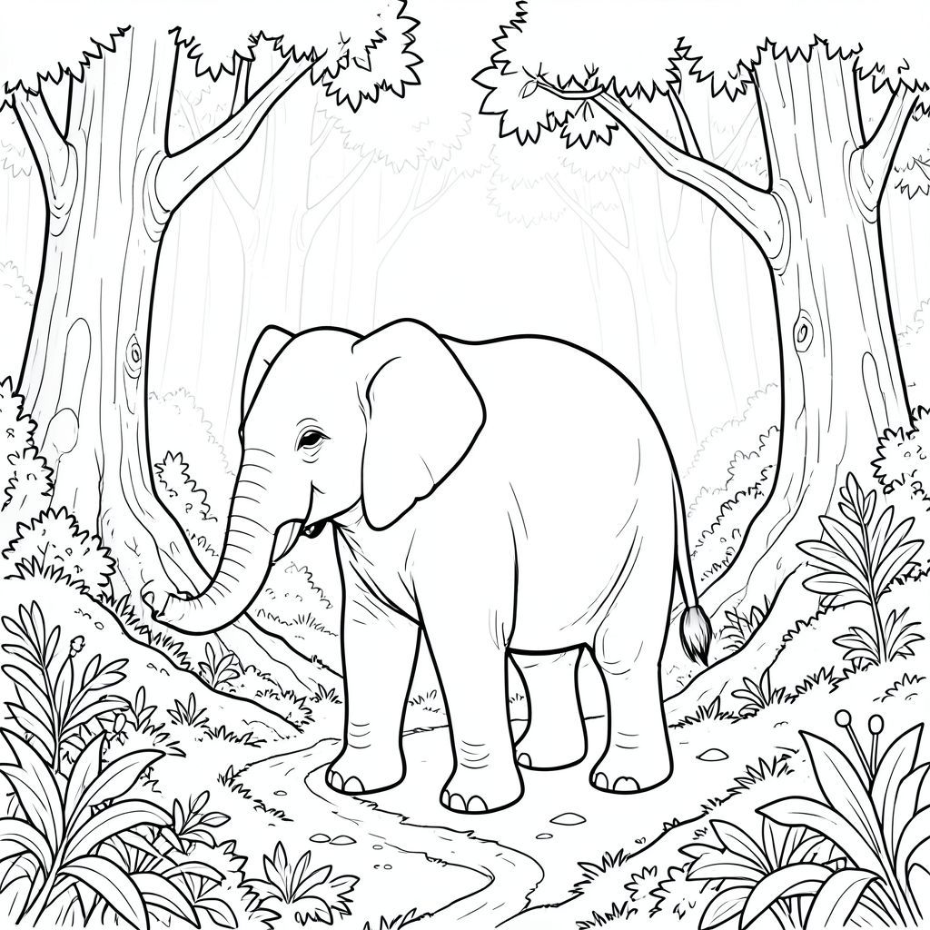 Độc lập, một con voi, một đầu, hai mắt, hai tai lớn, một thân cây, bốn chân, một đuôi, chân trên nền vững chắc, tỷ lệ tự nhiên, quy mô thích hợp trong môi trường, đúng về mặt giải phẫu, voi, rừng sương mù, cây cao chót vót cổ thụ, sương mù xếp nếp, kết cấu vỏ cây chi tiết, con đường quanh co phủ rêu, các lớp tán lá phức tạp, bầu không khí thanh tao, tán cây dày đặc, bầu không khí sương mù, nền chi tiết, trang màu, nghệ thuật đường nét, nền trắng, solo, đối tượng đơn, chính xác về mặt giải phẫu, giải phẫu hoàn hảo