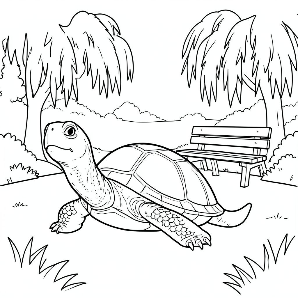 Độc lập, Rùa đơn, một đầu, hai mắt, bốn chân, một vỏ, một đuôi, bàn chân trên mặt đất vững chắc, tỷ lệ tự nhiên, quy mô thích hợp trong môi trường, đúng giải phẫu, rùa, công viên, ao, cây liễu, băng ghế, yên tĩnh, đơn giản, dọn dẹp, lý lịch, phong cảnh, cây xanh, trang tô màu, nghệ thuật đường, nền trắng, solo, chủ đề đơn, đúng giải phẫu, giải phẫu hoàn hảo