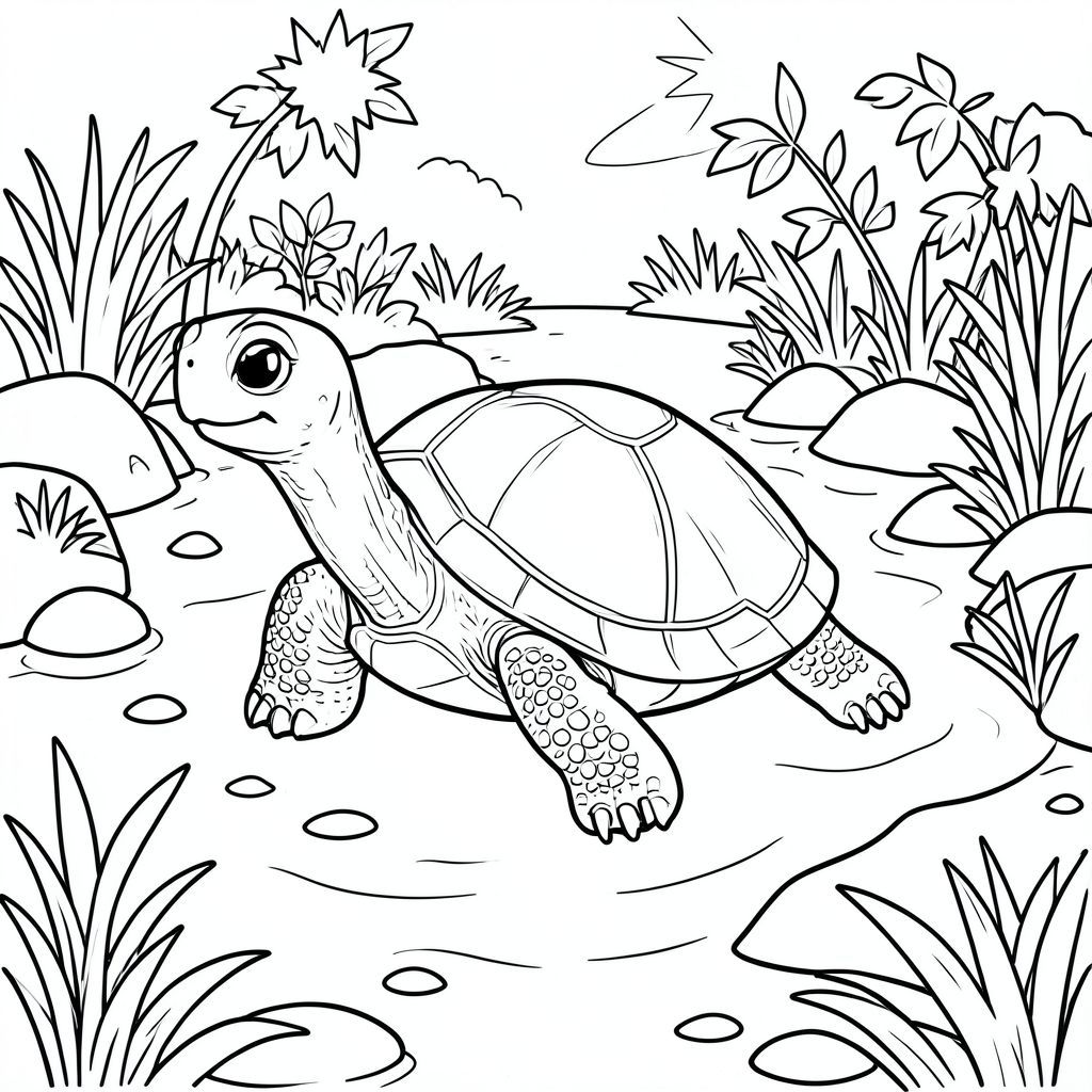 Độc lập, Rùa đơn, một đầu, hai mắt, bốn chân, một vỏ, một đuôi, bàn chân trên mặt đất vững chắc, tỷ lệ tự nhiên, quy mô thích hợp trong môi trường, đúng giải phẫu, rùa, nước, suối, đá cuội, đá, thực vật, tán lá, ánh sáng mặt trời, rõ ràng, nông, mịn, trang màu, nghệ thuật đường, nền trắng, solo, chủ đề đơn, chính xác về mặt giải phẫu, giải phẫu hoàn hảo