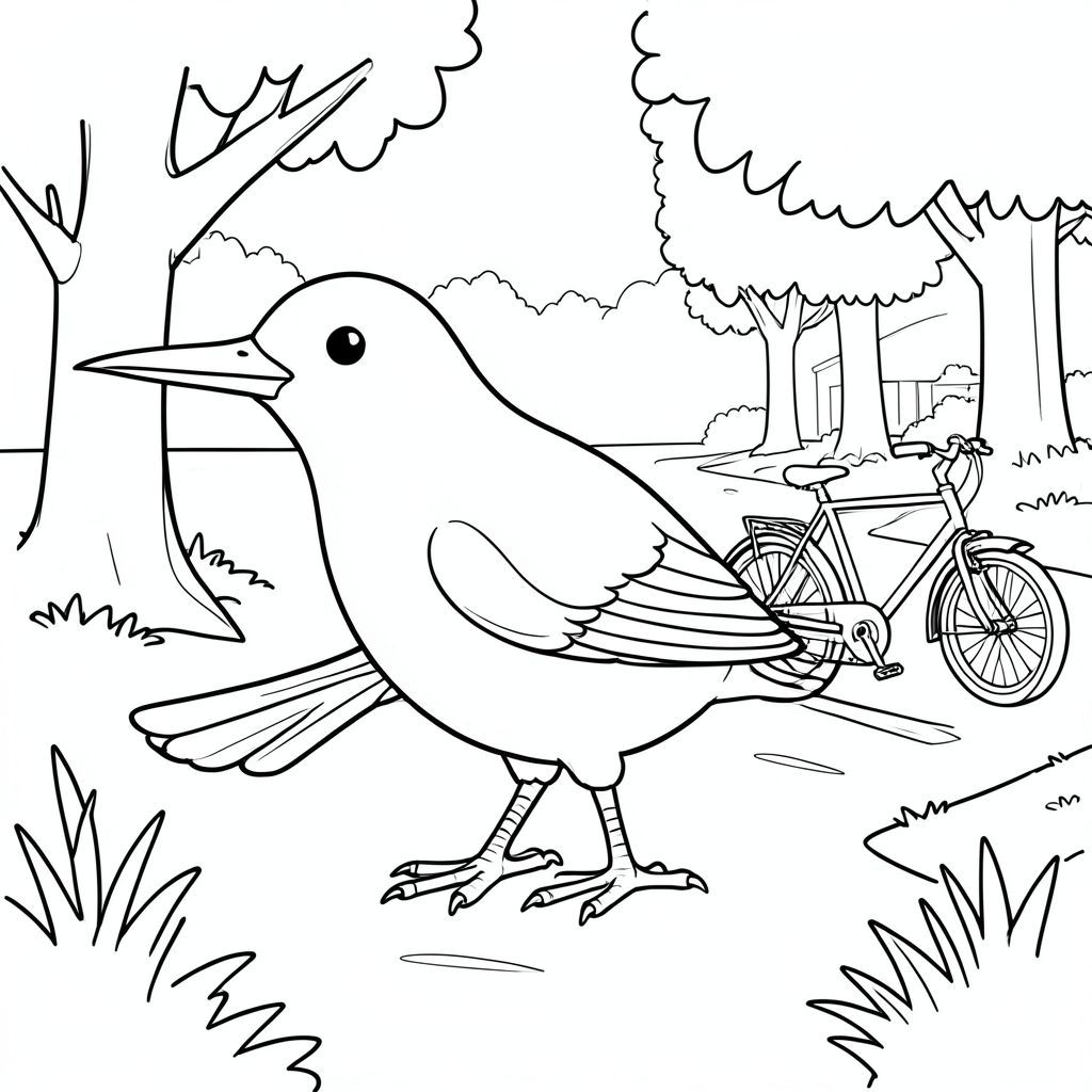 Độc mình, một con chim, một đầu, hai mắt, một mỏ, hai cánh, hai chân, một đuôi, tỷ lệ tự nhiên, quy mô thích hợp trong môi trường, đúng giải phẫu, chim, gỗ, con đường, yên tĩnh, xe đạp, công viên, ngoại ô, đơn giản, dọn dẹp, lý lịch, tuyến tính, trang màu, nghệ thuật đường, nền trắng, solo, chủ đề đơn, đúng giải phẫu, giải phẫu hoàn hảo