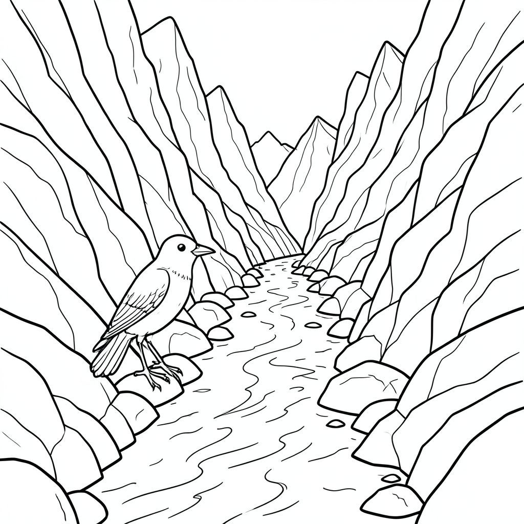 Độc mình, một con chim, một đầu, hai mắt, một mỏ, hai cánh, hai chân, một đuôi, tỷ lệ tự nhiên, quy mô thích hợp trong môi trường, đúng giải phẫu, chim, hẻm núi, tường đá, lối đi hẹp, nước trắng, sông chảy xiết, đá, đỉnh răng cưa, chế độ xem mở rộng, đá nhiều lớp, lọc ánh sáng mặt trời, trang màu, nghệ thuật đường, nền trắng, solo, chủ đề đơn, đúng giải phẫu, giải phẫu hoàn hảo