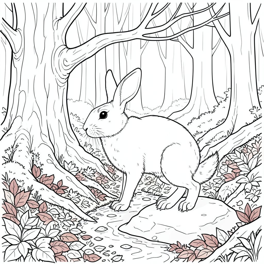 [Hình ảnh một con thỏ giày tuyết - hãy tưởng tượng một hình dạng hơi gù, thanh lịch. Thỏ hơi hướng sang trái, tai to và nhọn, mũi nhỏ, . Chân của nó dài và mảnh mai, kết thúc bằng bàn chân mỏng manh, hơi có màng. Bộ lông của nó có màu trắng kem, với một chút tinh tế ở đầu tai và mặt dưới của chân. Đôi mắt của nó to, và sâu, với một ánh sáng thông minh nhẹ. Đuôi thỏ dài và rậm rạp, hơi cong lên trên. Nó đang đứng trên một mỏm đá nhỏ, quay lưng về phía người xem. Nó mềm mại và khuếch tán, làm nổi bật kết cấu của bộ lông của nó.]