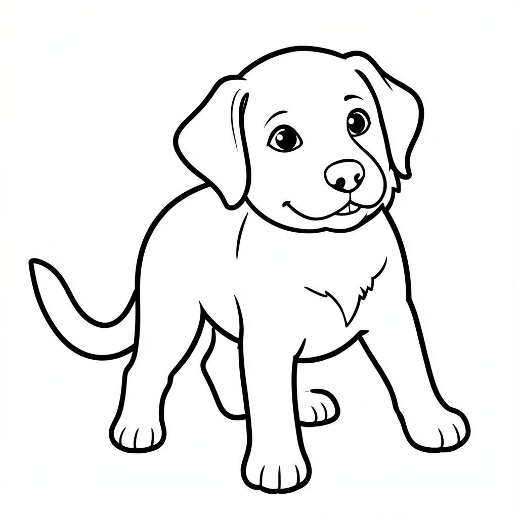 Dưới đây là mô tả về một bức tranh tô màu dành cho trẻ mới biết đi, tuân thủ tất cả các quy tắc của bạn: Mô tả hình ảnh: Một hình minh họa chó đơn giản, thực tế. được miêu tả trong một tư thế hơi góc cạnh, nhìn thẳng vào người xem với biểu cảm nhẹ nhàng, thân thiện. Bộ lông của nó ấm áp, màu sắc, đôi mắt to và biểu cảm, với ánh mắt hơi hướng lên trên. Một chiếc mũi nhỏ được đặt ngay phía trên miệng. Miệng của hơi mở, để lộ một chiếc răng nhỏ màu trắng. Đuôi của là một đường đơn, dày, màu đen uốn cong duyên dáng từ phía sau. Đuôi được đặt hơi lệch sang bên trái cơ thể chó, tạo ra một đường cong tinh tế. Các đường nét đậm và rõ ràng, tạo ra một đường viền mạnh mẽ, rõ ràng. Nền là một đường rắn, . Các tính năng chính: * * Một, dày, đường đen. * Các tính năng chính xác và chi tiết. * Được xác định rõ ràng và tự nhiên. * . * Đường viền dày, đậm. --- Hãy cho tôi biết nếu bạn muốn tôi tinh chỉnh điều này thêm!, trang tô màu đen trắng, phong cách lowbook, nghệ thuật đường nét, đơn sắc, không màu, không đổ bóng, không xám, không tô màu, nền trắng, chỉ phác thảo, phong cách vector, thiết kế phẳng, 2d, chính xác một đuôi duy nhất