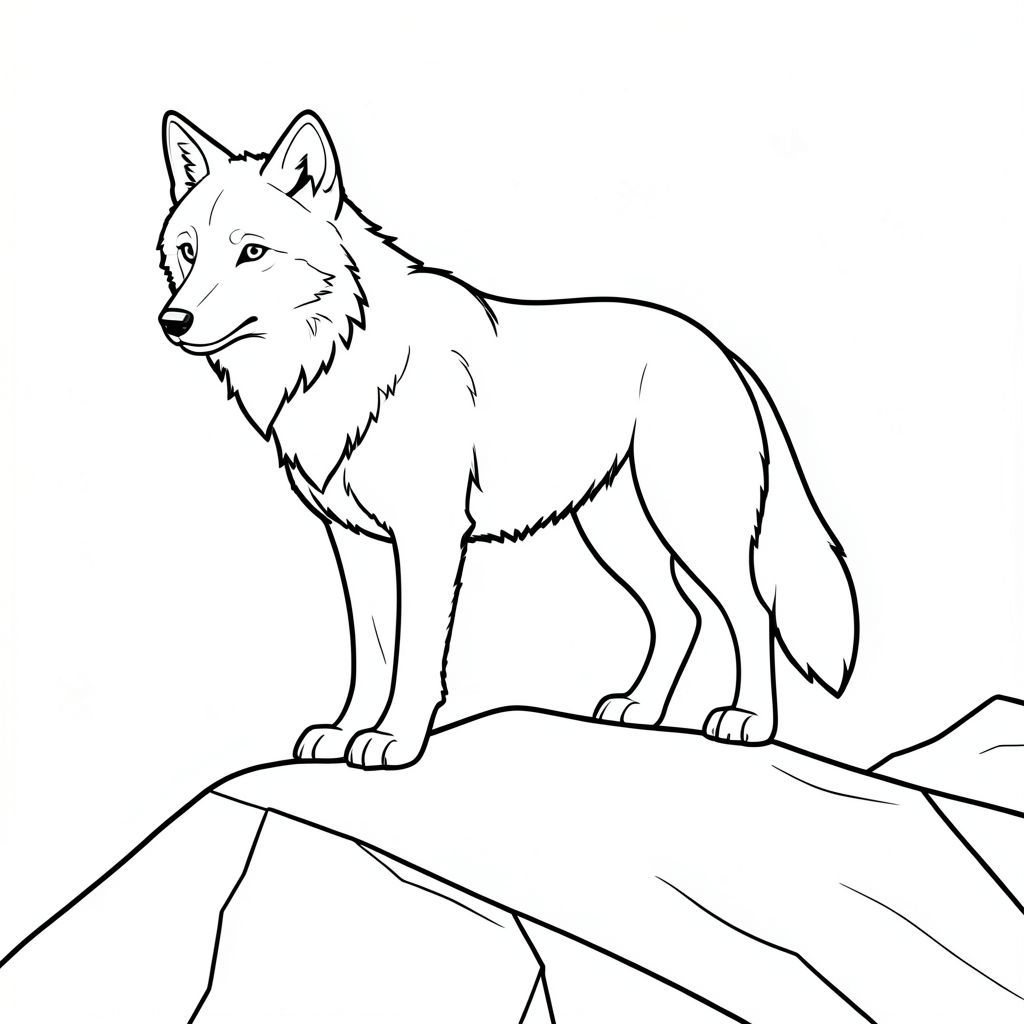 Dưới đây là mô tả về một cảnh có một con sói cách điệu, tuân thủ tất cả các quy tắc và thông số kỹ thuật của bạn. Mô tả: Một con sói đơn độc đứng trên một sườn núi phủ đầy tuyết. Con sói hơi quay mặt sang trái, đầu nghiêng về phía người xem. Bộ lông của nó bị tắt tiếng, với những thay đổi tinh tế về tông màu cho thấy vẻ ngoài tự nhiên, hơi già đi. Đuôi sói dài và hơi cong, hướng xuống dưới. Hậu cảnh là một khối đá đơn giản, có kết cấu tinh tế để tạo cảm giác chiều sâu. Con sói được hiển thị trong một bản vẽ đường thẳng, liên tục. Các đường nét chính xác và sạch sẽ, tạo nên tính thẩm mỹ tối giản, rõ ràng. Trọng tâm hoàn toàn là hình dạng của con sói và phong cảnh đơn giản. Yếu tố hình ảnh: * Sói - Đại diện duy nhất, cách điệu. * sự hình thành đá - Hình dạng hình học, đơn giản. * Vẽ đơn, liên tục, đường thẳng. * Không có. * Không có đột biến, nhiều đầu, nhiều đuôi, nhiều động vật, màu sắc,.