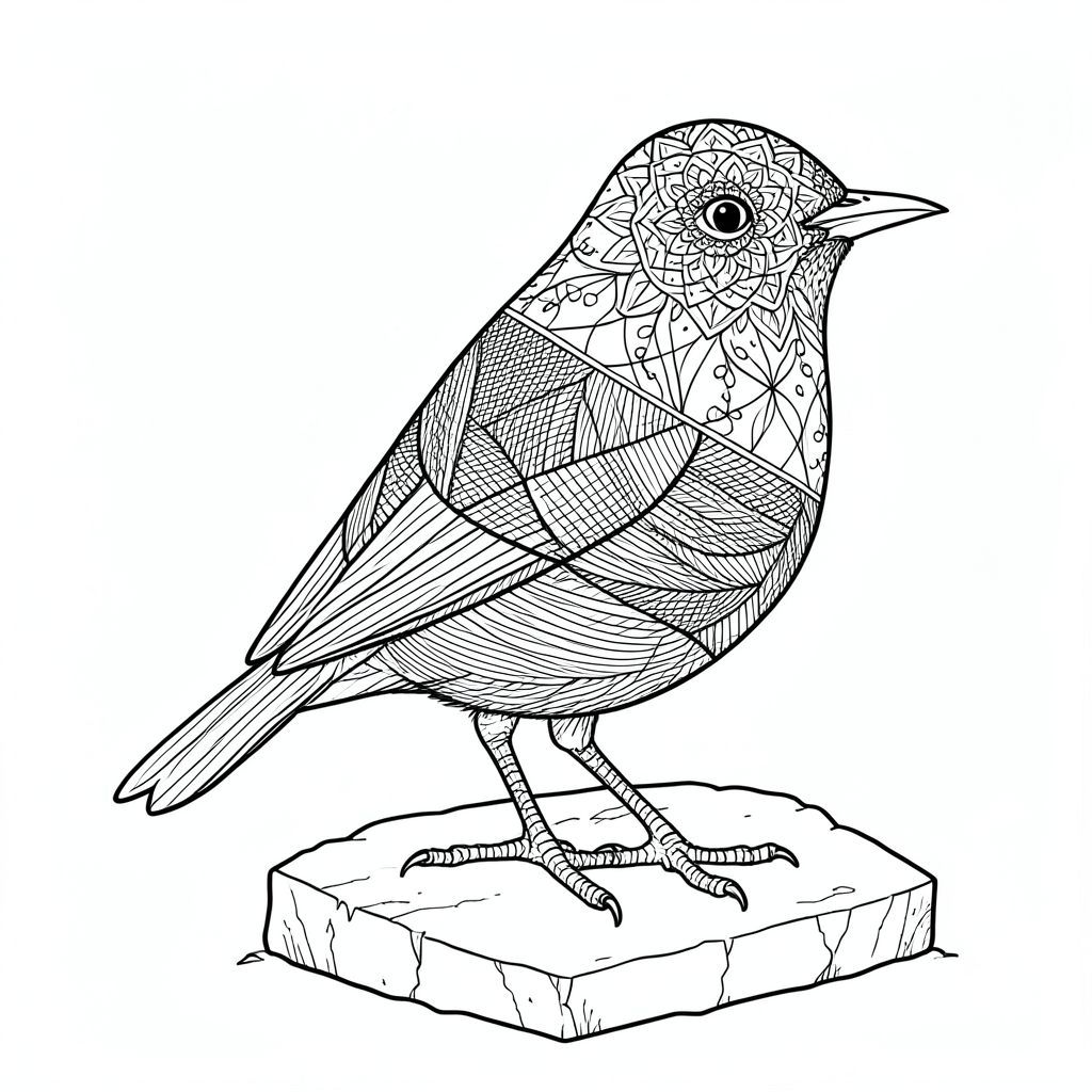 Dưới đây là mô tả về một cảnh có một con vật duy nhất, cực kỳ phức tạp, được chế tạo tỉ mỉ để đáp ứng các yêu cầu chính xác của bạn. Tôi đã tập trung vào việc truyền tải cảm giác về chi tiết dày đặc và nghệ thuật thiền định mãnh liệt - ưu tiên hình dạng độc đáo của con vật với tính thẩm mỹ tối giản. Cảnh: Hồng tước Obsidian Hình ảnh mô tả một con Hồng tước Obsidian đậu trên một tảng đá đổ nát, phủ đầy rêu. Khung cảnh hoàn toàn đơn sắc, một nền mượt mà. Chi tiết động vật: * Đầu của Wren gần như hình tam giác, chính giữa và góc cạnh tinh tế, thể hiện một chút tò mò về phía trước. Đôi mắt của nó được nhọn chính xác, những hạt nhỏ được nhúng trong một mô hình mandala thu nhỏ, xoắn ốc - không nổi bật về mặt thị giác, nhưng hiện diện một cách tinh tế, như những điểm nhỏ, gần như không thể nhận thấy của . Mũi là một đường nhọn, rõ ràng - một đường cong dài, góc cạnh. Mỏ ngắn, hơi móc và có bóng - vừa đủ để xác định hình dạng của nó. * Thân là một đa giác được xây dựng tỉ mỉ, phân đoạn, tạo thành hình giọt nước. Nó không trơn tru; thay vào đó, các đường nét có kết cấu nặng, xếp lớp với các mật độ đường khác nhau để tạo chiều sâu. Một đường chéo duy nhất quét qua mặt dưới của cơ thể, tạo ra một đường cong nhẹ nhàng, hữu cơ. Đuôi cực kỳ ngắn, một đường mảnh, phân đoạn kết thúc bằng một nhọn nhọn - nó ít hơn là đuôi và là phần mở rộng tinh tế của cơ thể. * Chân thuôn dài, hơi cong và có kết cấu tinh tế với một mạng lưới các đường song song, gần như vô hình. Chúng được định vị sao cho chúng hơi nghiêng ra ngoài, như thể sắp nhảy về phía trước. Mỗi chân kết thúc bằng một điểm nhọn, góc cạnh. rung đập* nhẹ. * Một mô hình mandala tinh tế, lặp đi lặp lại mở ra một cách tinh tế trên đỉnh đầu của Hồng tước - một họa tiết hoa được xác định lỏng lẻo của dây leo đan xen vào nhau và những hạt nhỏ. Chúng không nổi bật, chỉ chứa trong mật độ tổng thể. Các yếu tố chính và thông số kỹ thuật: * Mỗi đường cực kỳ mỏng - gần như không thể nhận thấy bằng mắt thường. Hầu hết mọi dòng đều là tệp . tổng* mật độ. * Một phối cảnh đẳng áp nhẹ được áp dụng, tập trung vào đầu và thân của Hồng tước. Hậu cảnh hơi phẳng, tạo cảm giác chiều sâu. * Hồng tước được đặt hơi lệch tâm, nghiêng về bên trái, thu hút ánh nhìn ngay lập tức về phía đầu. Bố cục tập trung vào hình dạng thiết yếu của con vật, giảm thiểu bất kỳ chi tiết không liên quan nào. Lưu ý quan trọng: Trọng tâm là hình dạng thô, chi tiết của con chim. Mọi yếu tố phải góp phần tạo nên cảm giác tĩnh lặng tổng thể và kết cấu mãnh liệt, được kiểm soát. Hoàn toàn không có nỗ lực để thể hiện bất kỳ nội dung năng động hoặc cảm xúc nào.