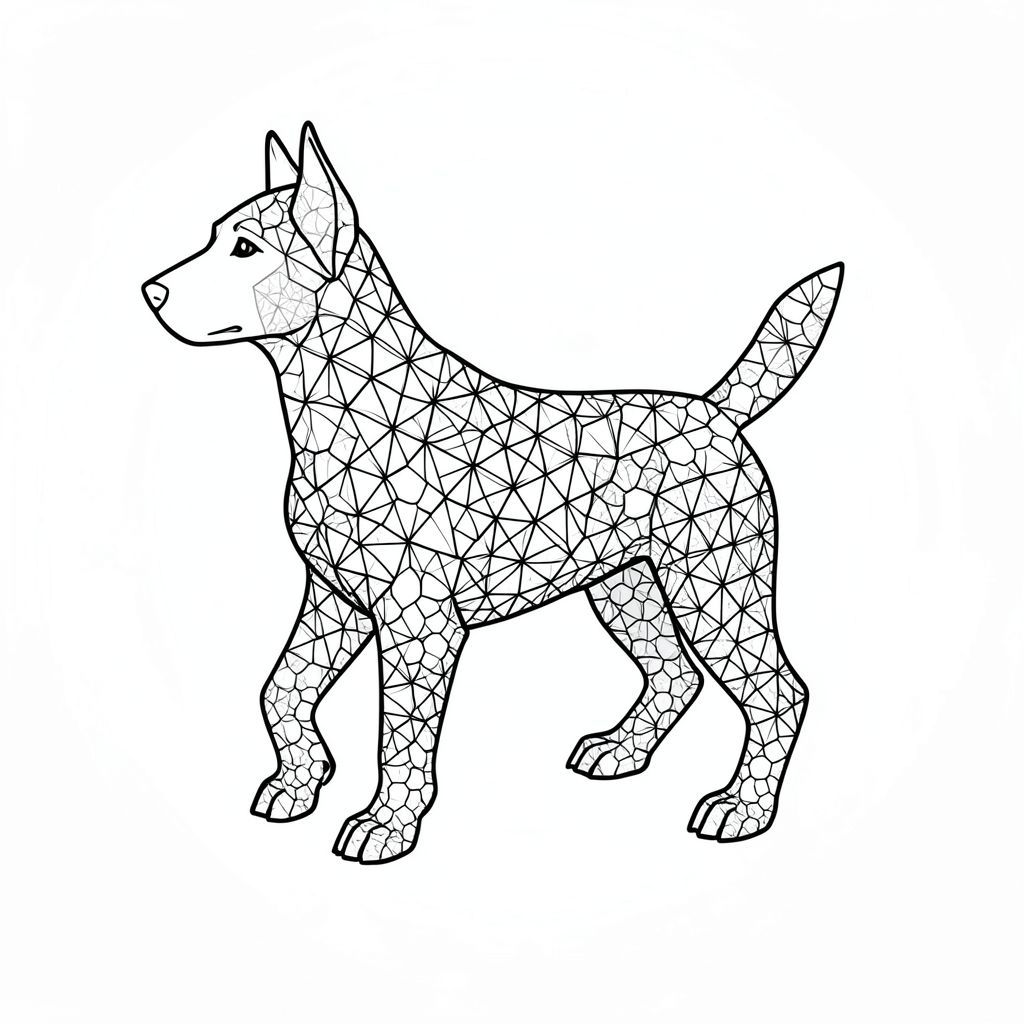 Xung quanh vai chó, một tập hợp các đường nhỏ hơn, có hình dạng bất thường được sắp xếp theo một mô hình lỏng lẻo, gần như hữu cơ. Những đường này có vẻ ngoài hơi 'mòn' - làm mờ các cạnh một cách tinh tế. Chúng được nối với nhau bằng những đường đứt nét nhỏ, gần như vô hình, nhưng gợi ý một cấu trúc tinh tế. Nhấn mạnh theo chiều dọc - Trên cùng Đỉnh đầu của là một phần riêng biệt, hơi dài của . Nó được hình thành bởi một loạt các hình tam giác chồng lên nhau, nhỏ hơn, tương tự như mô hình cơ bản, nhưng dày đặc hơn một chút. Một gradient rất tinh tế được áp dụng cho phía trên, chuyển từ sáng hơn sang tối hơn , tạo ra một điểm nổi bật tinh tế. Bảng màu - Sự thay đổi tinh tế Bảng màu chủ yếu bao gồm các biến thể trong các tông màu - từ a đến nhạt hơn một chút và một gợi ý về a nơi các mẫu chồng lên nhau. Có chặn màu riêng biệt. Màu sắc tinh tế và nhiều lớp, tạo cảm giác có chiều sâu và phức tạp. Hiệu ứng tổng thể - Mất cân bằng Hình ảnh cố tình mất cân bằng. Hình dạng của được căn giữa, nhưng sự phức tạp của các hoa văn tạo ra sự mất cân bằng tinh tế trong bố cục. Sự sắp xếp của các mẫu và độ sâu của các khu vực tạo ra sự căng thẳng trực quan. Đó là một nghiên cứu về sự hỗn loạn có kiểm soát, một cảnh quan chi tiết không cảm thấy choáng ngợp. Kết thúc hình ảnh ---