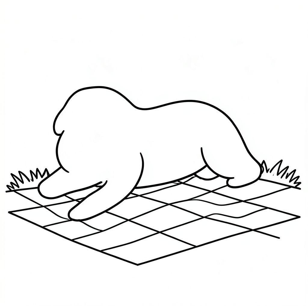 Dưới đây là mô tả về '' như một cảnh nghệ thuật đường nét đen trắng, được thiết kế để trình bày dưới dạng cắt giấy, tập trung vào các yếu tố bạn đã yêu cầu. --- Hãy tưởng tượng một hình bóng đơn giản, hơi góc cạnh. Một, gần như hình bầu dục, là trọng tâm chính. Nó nằm nghiêng, một chân trước hơi duỗi ra, có thể nhìn thấy một đường cong nhẹ nhàng. Cơ thể là một đường thẳng liên tục nhúng xuống và nâng lên một cách tinh tế. Bên dưới, có một gợi ý về một cánh đồng cỏ. Đó là một lưới cơ bản, nhiều lớp gồm các đường chồng lên nhau, tối hơn một chút - một gợi ý về đất và cỏ. Các đường nét không sắc nét; chúng chảy vào nhau, tạo cảm giác chiều sâu. Đầu của là một đường cong nhỏ hơn, rõ ràng hơn, được đặt hơi lệch tâm. Đó là một hình tam giác đơn giản hóa, tạo thành một khu vực nhỏ, có bóng tối. Nền là một sự rửa rất tinh tế của , hầu như không thể nhận thấy. Toàn bộ bố cục cảm thấy cân bằng. Có một sự tách biệt rõ ràng giữa và cánh đồng, nhưng không phải là sự tách biệt rõ ràng, cứng nhắc. Các đường nét không hoàn toàn đồng nhất; một số khu vực có chiều sâu hơn một chút, tạo cảm giác chuyển động và khối lượng. Ấn tượng tổng thể là một trong những sự tĩnh lặng yên tĩnh và hình thức nhẹ nhàng. --- Để hình dung điều này, hãy tưởng tượng một nền trắng và một màu rất tốt cho cỏ. Đó là một cảm giác của những hình dạng mềm mại, đơn giản. --- Hãy cho tôi biết nếu bạn muốn tôi điều chỉnh bất cứ điều gì!, tranh tô màu đen trắng, phong cách lowbook, nghệ thuật đường nét, đơn sắc, không màu, không đổ bóng, không xám, không tô màu, nền trắng, chỉ phác thảo, phong cách vector, thiết kế phẳng, 2d