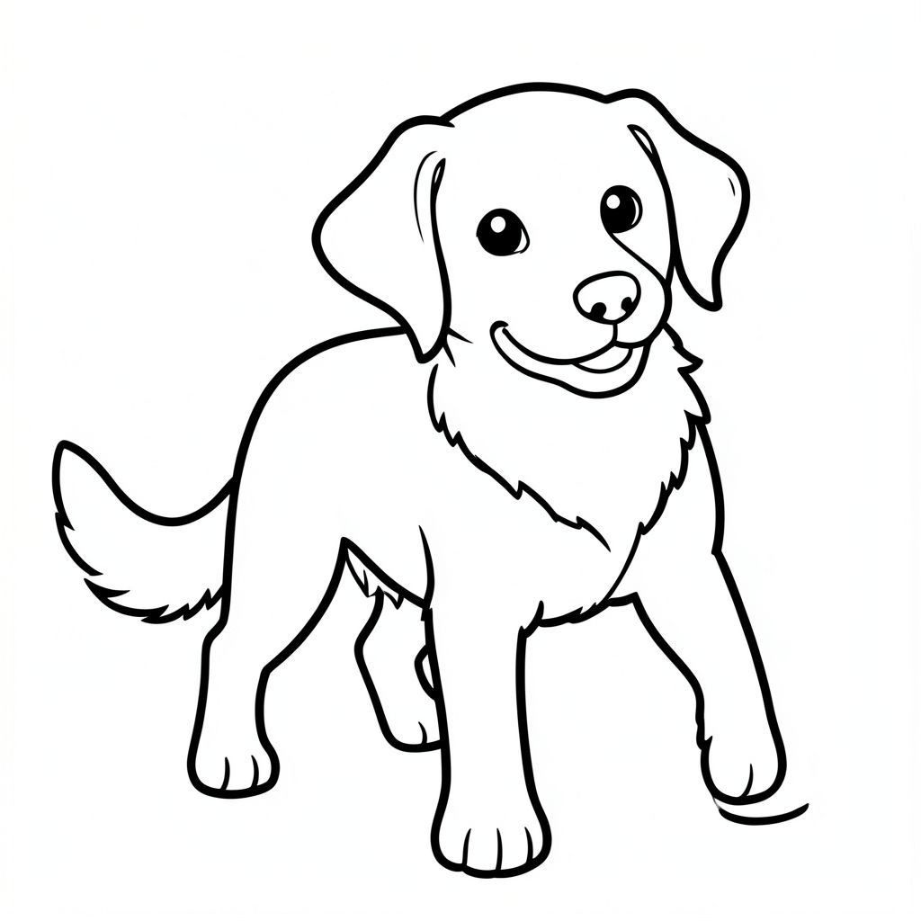 Dưới đây là mô tả về trang màu, tuân thủ nghiêm ngặt tất cả các quy tắc: Tô màu: Chú chó hạnh phúc Một hình minh họa đơn giản, thực tế về một chú chó hạnh phúc. được miêu tả trong một tư thế hơi góc cạnh, nhìn về phía người xem. Bộ lông của nó được thể hiện với các đường viền dày, đậm với sắc thái của và. có biểu cảm thân thiện - một nụ cười nhẹ. Mũi của nó là một hình tròn nhỏ. Miệng của nó là một đường cong đơn giản, tạo thành một đường cong nhẹ nhàng. Đuôi của là một lông tơ màu trắng duy nhất, kéo dài từ phía sau. Đuôi được đặt hơi lệch sang bên trái cơ thể chó, tạo đường cong nhẹ nhàng. Nền là một màu trắng tinh khiết. Toàn bộ nội thất của chú chó được lấp đầy bởi không gian trắng, tạo nên một hình ảnh sạch sẽ và đơn giản. Không có chi tiết nào khác hiện diện. Các yếu tố chính: * * Một cái đuôi trắng. * Tất cả các không gian nội thất đều có màu trắng tinh khiết. * được mô tả với tỷ lệ chân thực. * Đôi mắt được xác định rõ ràng, mũi nhỏ và miệng đơn giản. * Đường viền dày, đậm. * Màu trắng tinh khiết.