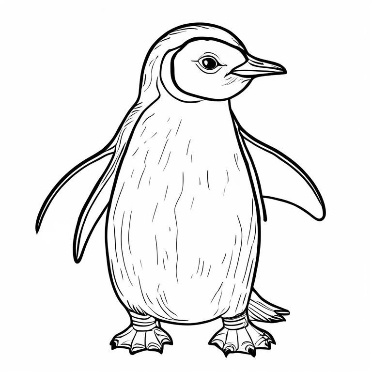 Hình minh họa nghệ thuật đen trắng của một chú chim cánh cụt ở giữa trang giấy.