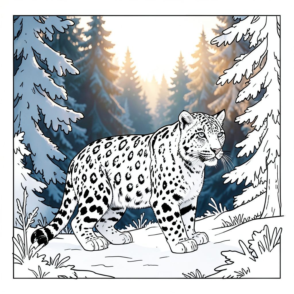 Tạo ra một bức ảnh siêu thực về một con báo tuyết đơn độc, tắm trong ánh sáng thanh tao của mặt trời chiều muộn xuyên qua rừng thông mờ mịt. Con báo được định vị trong một hình bóng ấn tượng, nhấn mạnh vóc dáng mạnh mẽ của nó trên nền màu xanh lá cây và xanh lam đậm, mờ. Ánh sáng là chìa khóa - ánh sáng ấm áp, khuếch tán với bóng dài và điểm sáng, tạo cảm giác hùng vĩ yên tĩnh. Bảng màu: xanh đậm, trắng băng, nâu vàng và đỏ thẫm từ tán lá. Tâm trạng: chiêm nghiệm, hơi u sầu, nhấn mạnh vẻ đẹp hoang sơ của vùng hoang dã Siberia. Tiêu điểm: chi tiết sắc nét, độ sâu trường ảnh nông.
