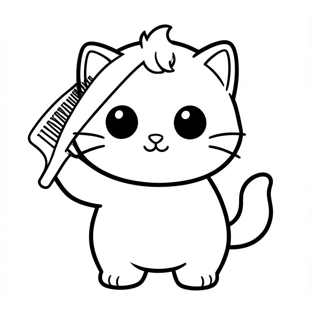 Mèo con chải lông bằng lược đơn giản.