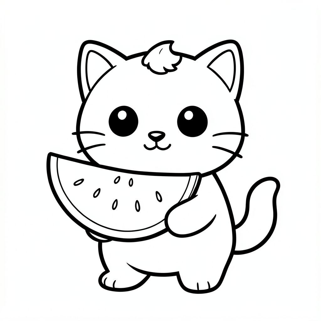 "Mèo con đang cầm một lát dưa hấu. Dưa hấu phải trong, sạch và có thể nhìn thấy được.